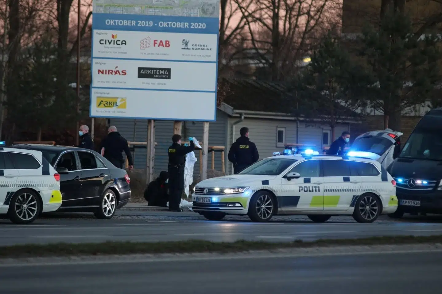 Ifølge Fyens Stiftstidende er fire-fem personer blevet anholdt ved Bauhaus i Risingkvarteret, hvor en Mercedes-bil også bliver undersøgt.