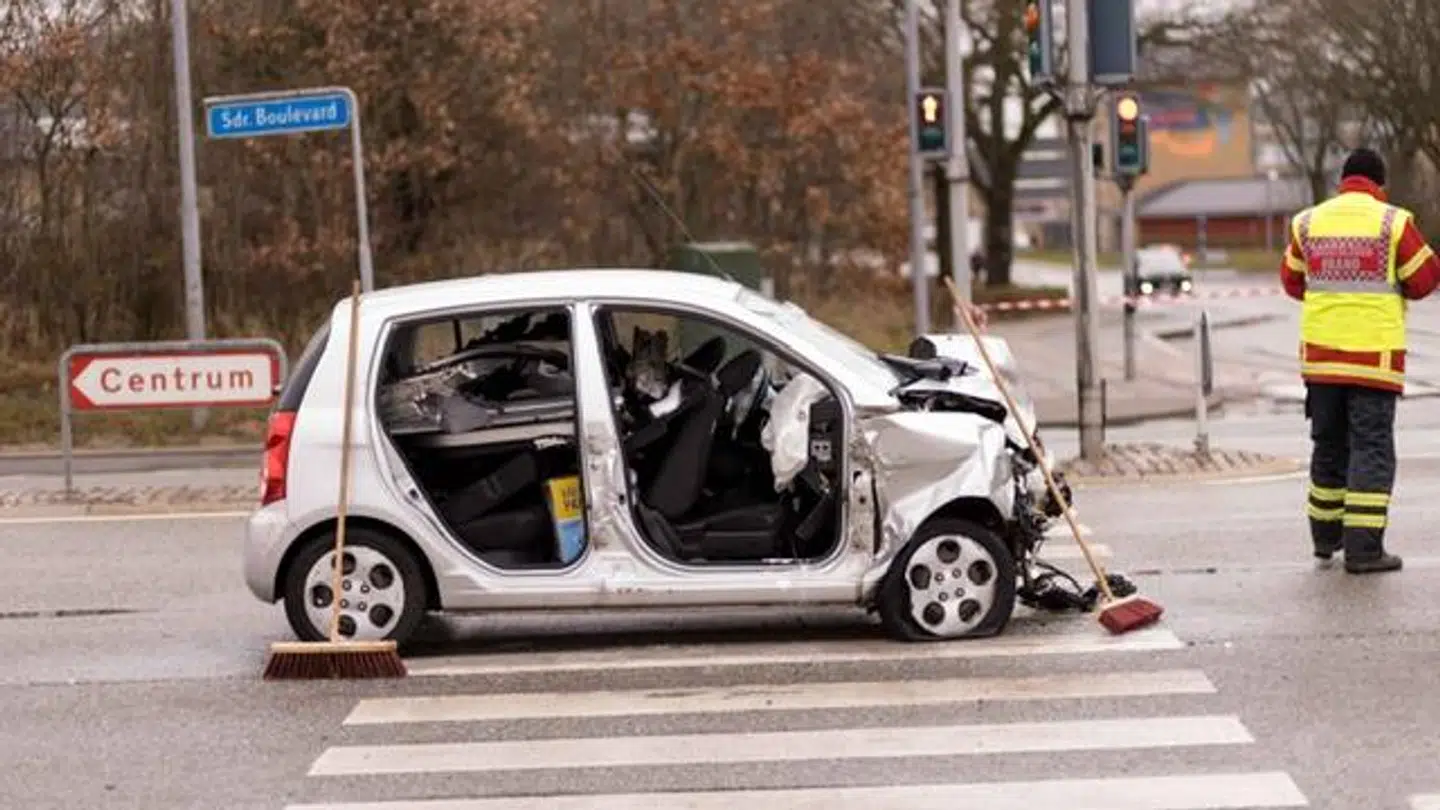 »Det er sket i et kryds, så det tyder på, at den ene part køret over for rødt lys,« siger vagtchefen.