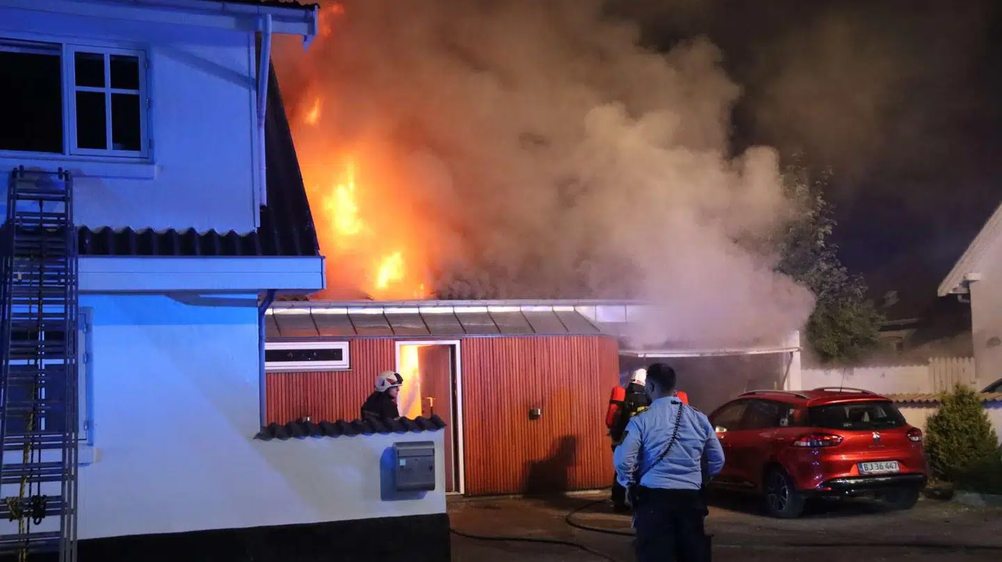 Det var klokken 02.13 natten til torsdag, at politiet modtog en anmeldelse om en bygningsbrand i den østjyske by Hornslet.