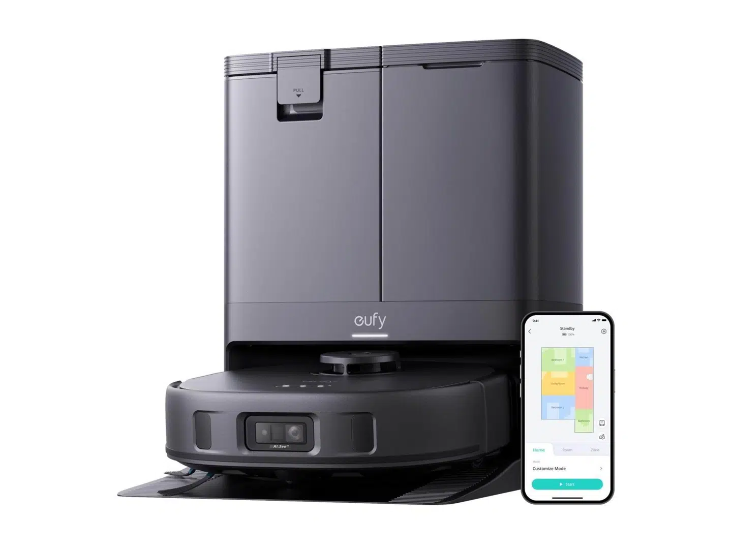 Alt styres nemt via Eufy-appen, hvor du kan oprette zoner, virtuelle grænser og starte rengøringen, uanset hvor du befinder dig. Med Eufy X10 Pro Omni får du en kraftfuld, intelligent og brugervenlig løsning, der holder dit hjem rent – helt automatisk.