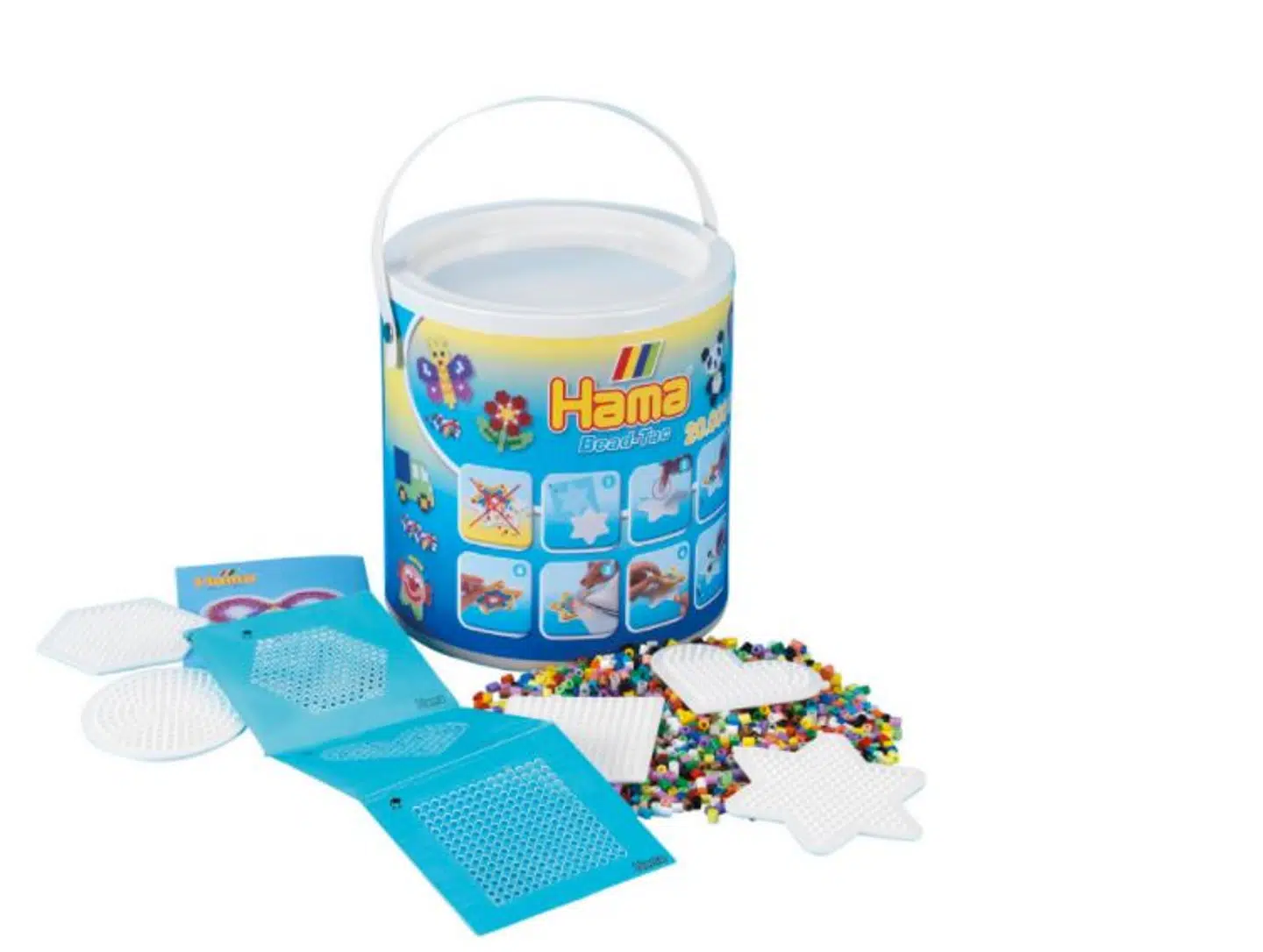 Indhold: 20.000 perler, 5 perleplader, 1 Hama Bead-Tac, motivark, vejledning og strygepapir.