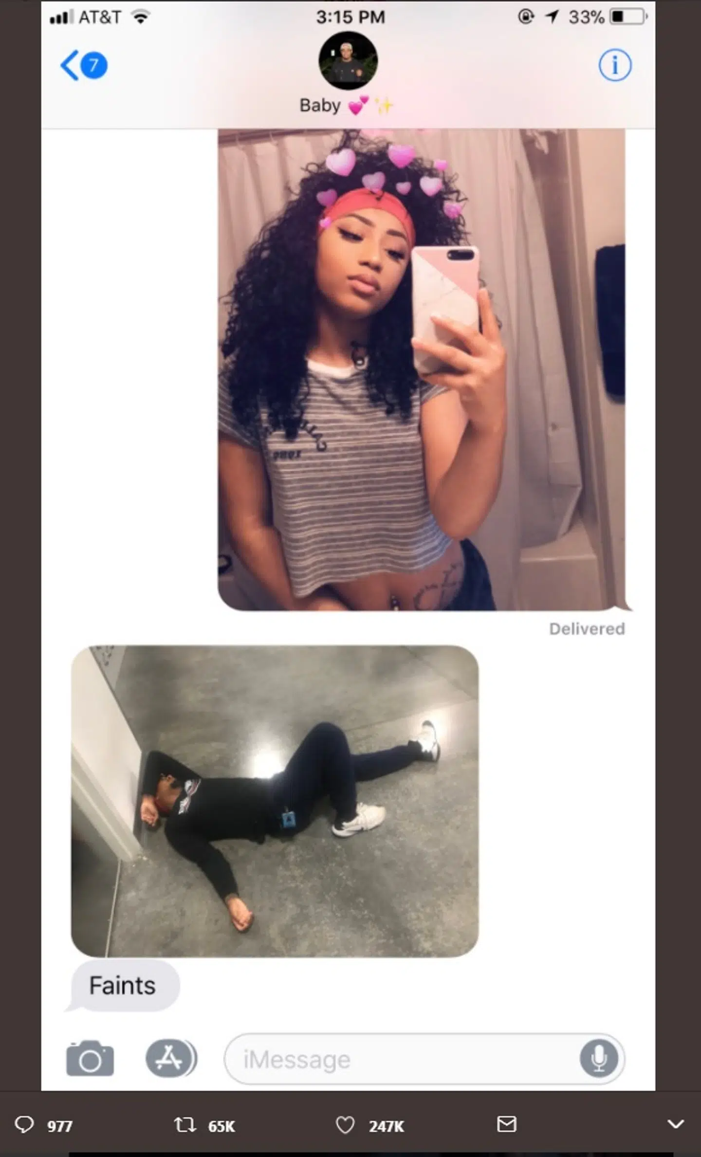 »Han fik en fra sit job til at tage det her billede af ham - bare for at kunne sende det som en reaktion. Jeg er SÅ vild med den slags kærlighed,« skriver @eaaaaron___