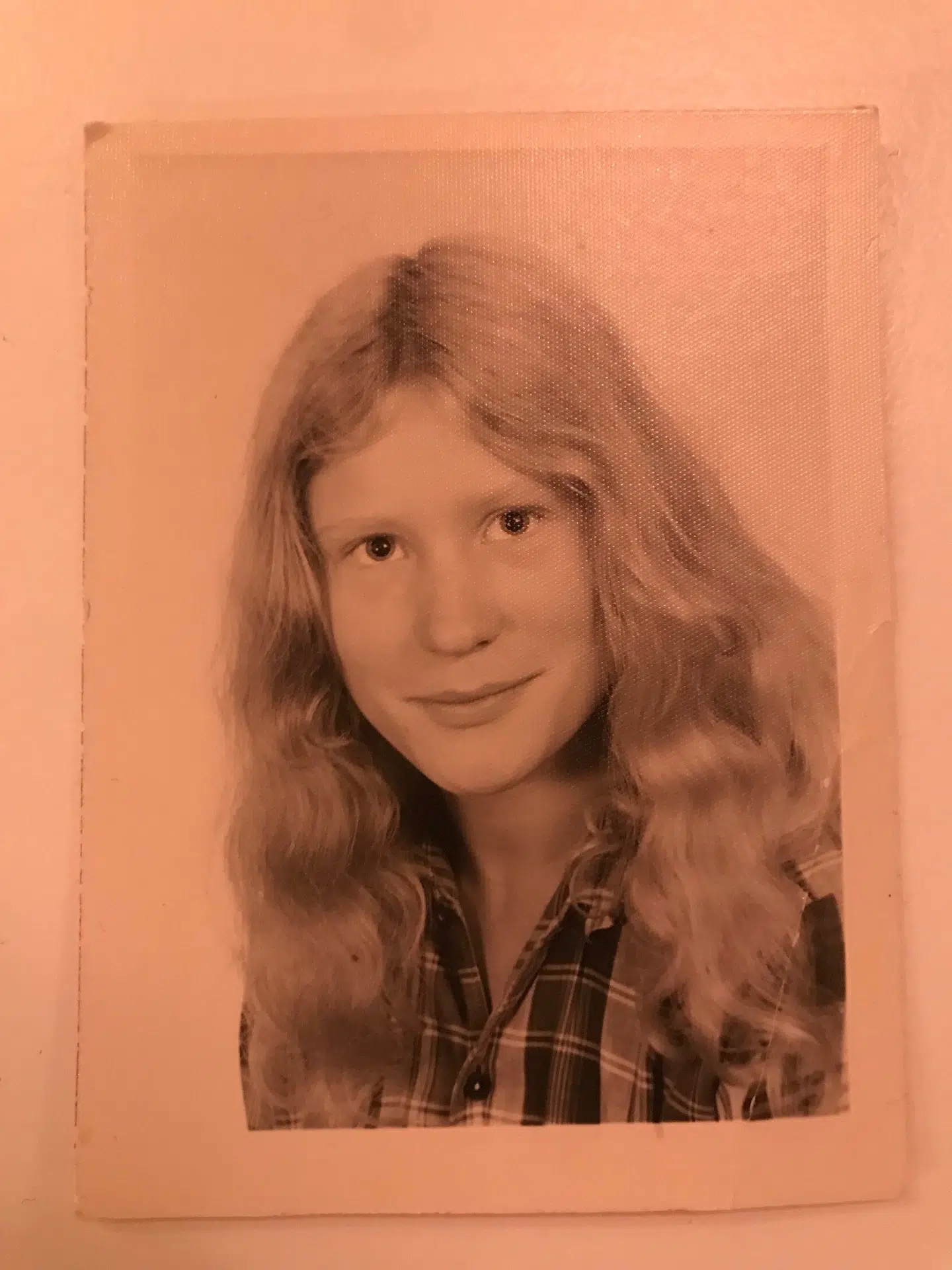 Her mit skolebillede fra jeg var 16. Dengang nøjedes vi med at kigge langt efter hinanden og flirte. Jeg fik min første kæreste, da jeg var 17. Jeg spillede lidt guitar, var vild med Joan Baez og drømte om at gå i spidsen for et protesttog med min guitar. Fra jeg var 14, arbejdede jeg på diakonissestiftelsen på Frederiksberg efter skoletid, hvor jeg serverede mad til de gamle diakonisser, der havde været ude i verden at tjene. De kunne jo ikke nogensinde blive gift og var måske derfor altid meget glade, når der kom en læge eller en præst af hankøn. De havde været missionærer ude i verden. Jeg husker især, da en søster Karoline blev 100 år.