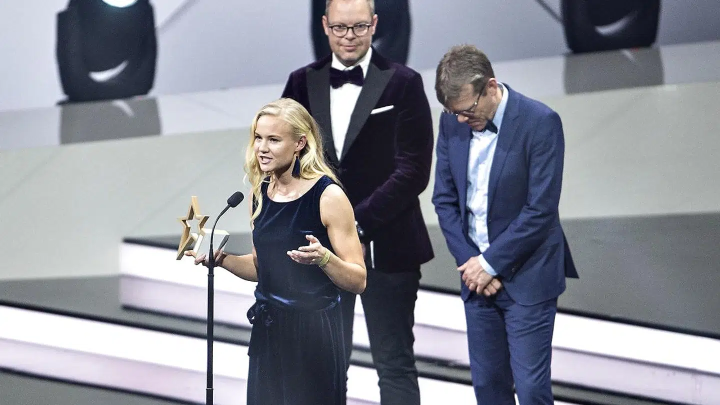 Den tidligere håndboldspiller Lars Christiansen og roeren Eskild Ebbesen fortalte først en række pæne ord og muntre anektdoter om Tom Kristensen , og da de afslørede vindernavnet, rejste hele salen sig op i én stor hyldest til Le Mans-legenden, der kom gående op ad gulvet mod scenen. Tydeligt rørt og helt vildt stolt, da han så sin byste.