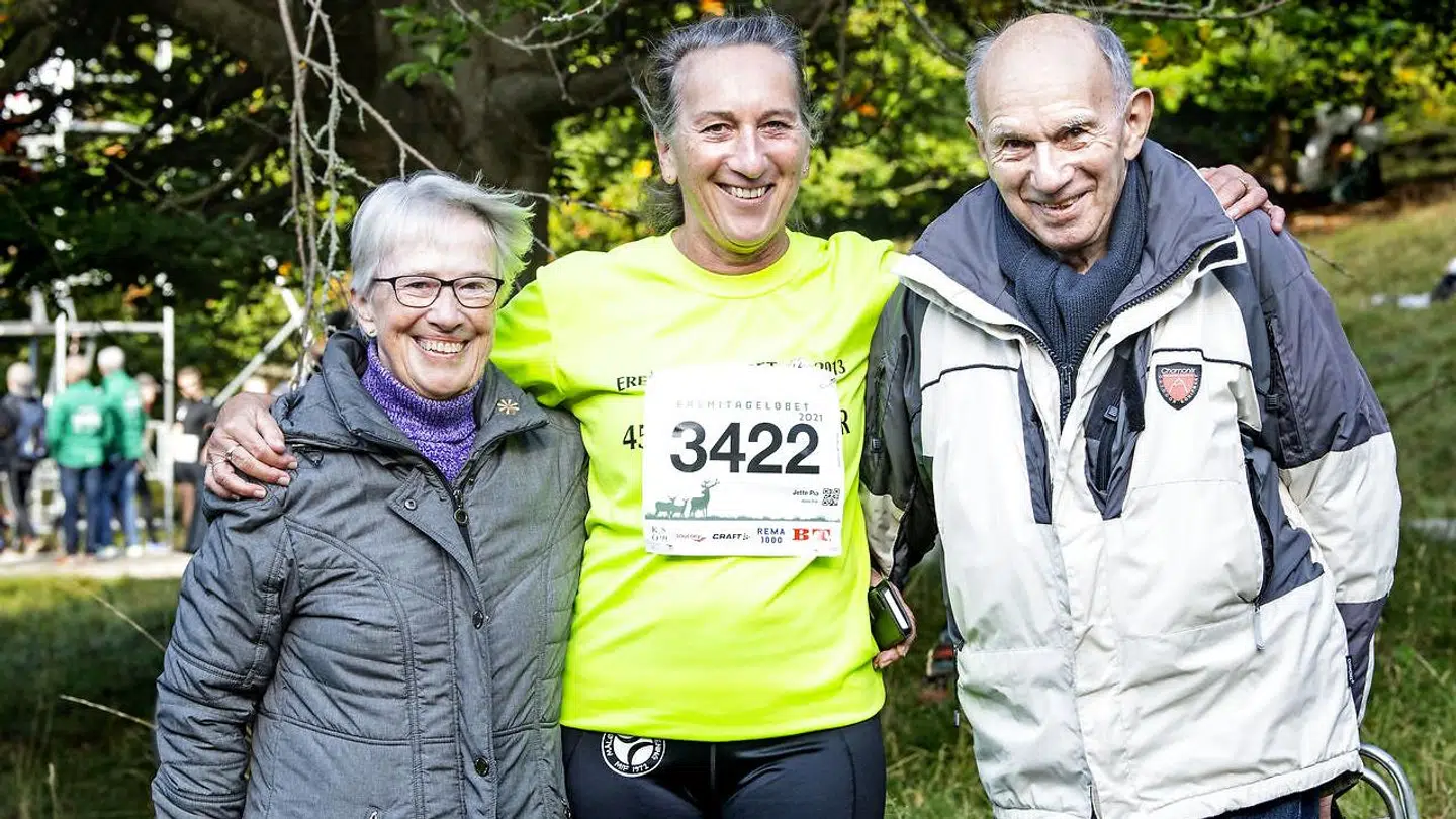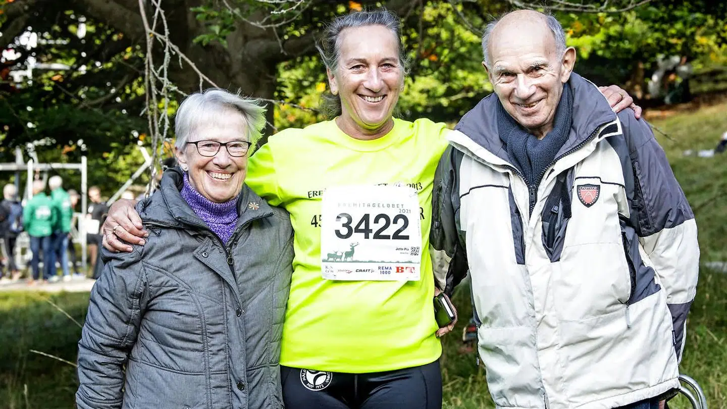 Her er Jette Pia Herringe sammen med sine forældre inden søndagens løb.