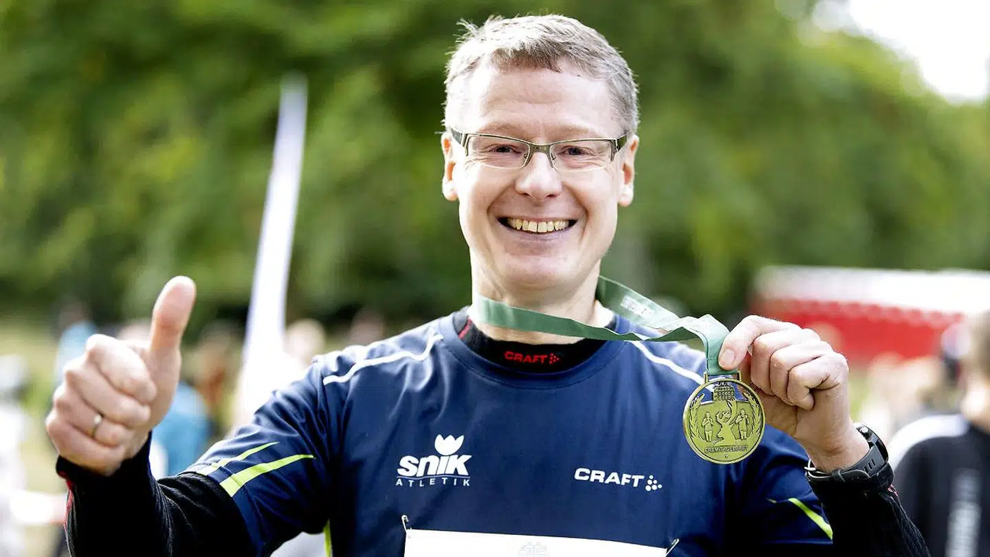 For 18. gang var Jacob Holm Hansen, kommunikationsstrateg i Lyngby-Taarbæk Kommune, med. »Det er dejligt at blive båret frem af publikum, når formen ikke er, hvad den har været. Jeg kommer stærkt tilbage næste år,« siger han og tager en bid af medaljen.