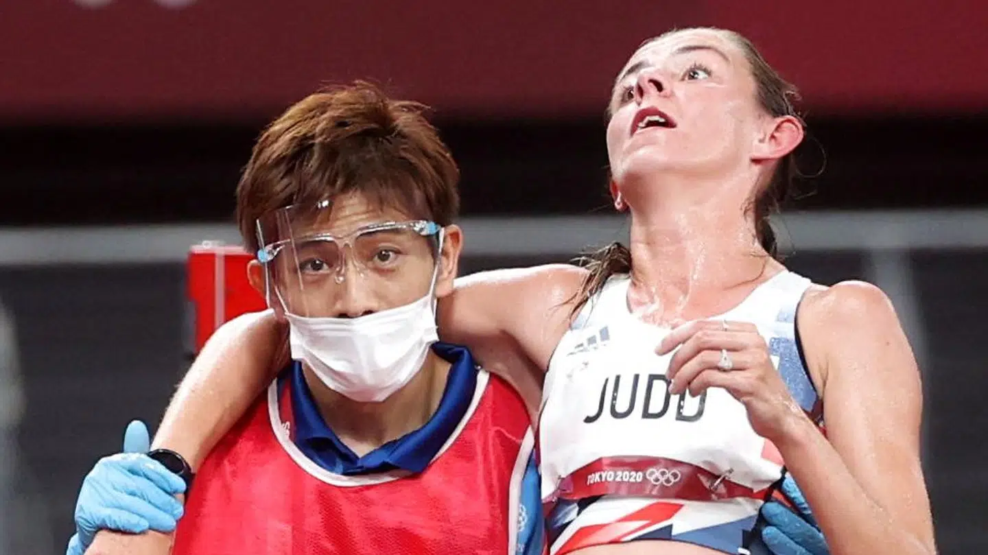 Daily Mail skriver, at Jessica Judd lå i flere minutter og hungrede efter vand, inden landsmanden Eilish McColgan spurtede hen og gav hende en flaske.