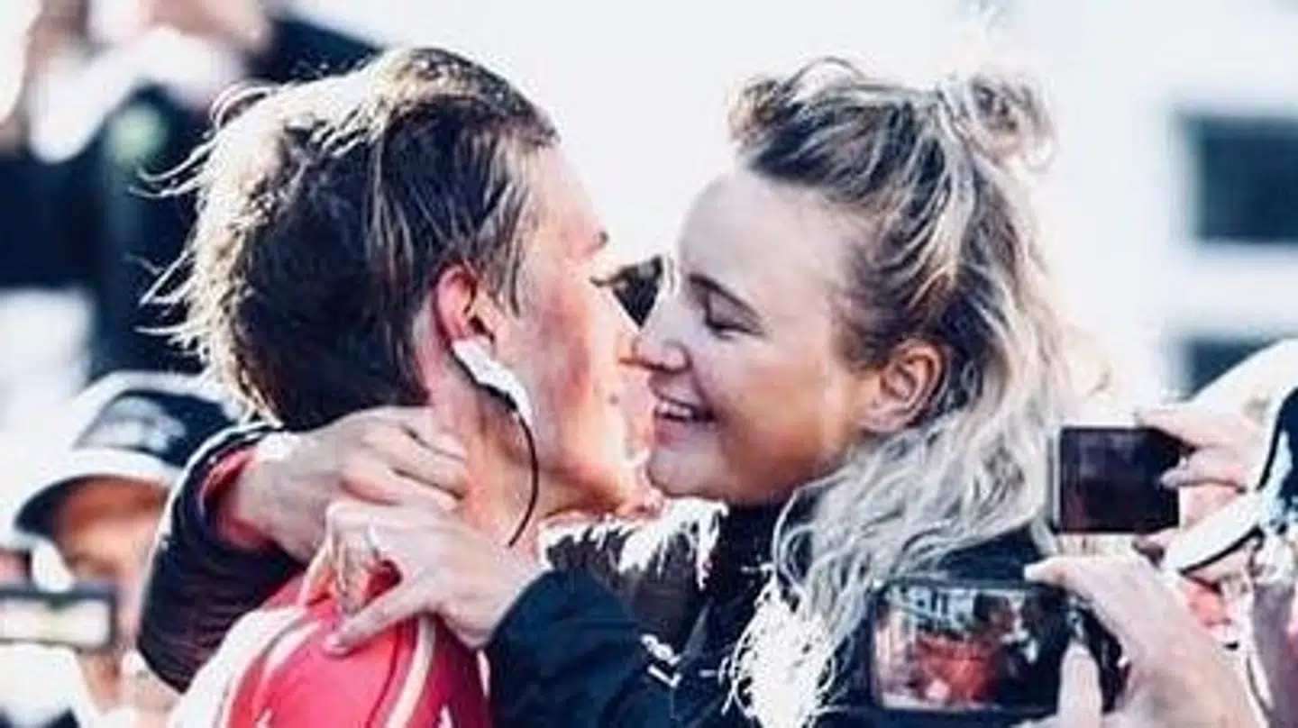 Hun blev liggende i vandet adskillige sekunder efter, de andre konkurrenter var gået op. Kiggede rundt. Tog hovedet kort under vandet. Og blev så hjulpet op og krammet af sine holdkammerater.