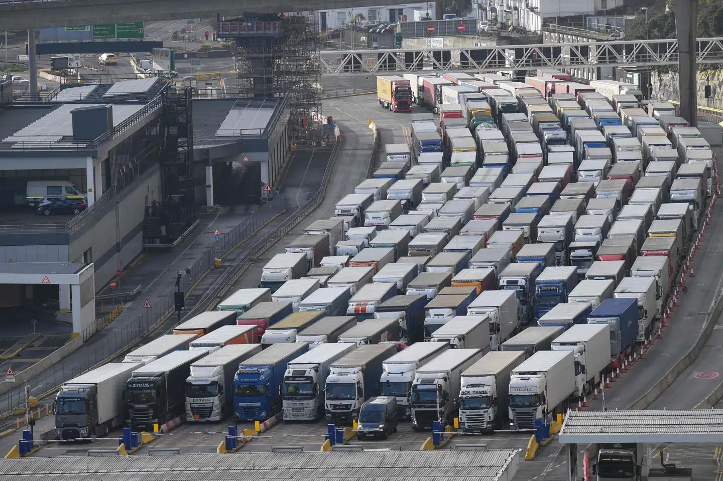 Varerne står helt bogstaveligt i kø i Calais på den franske side for så hurtigt som muligt at kunne fylde de britiske supermarkeders hylder op med udenlandske varer.