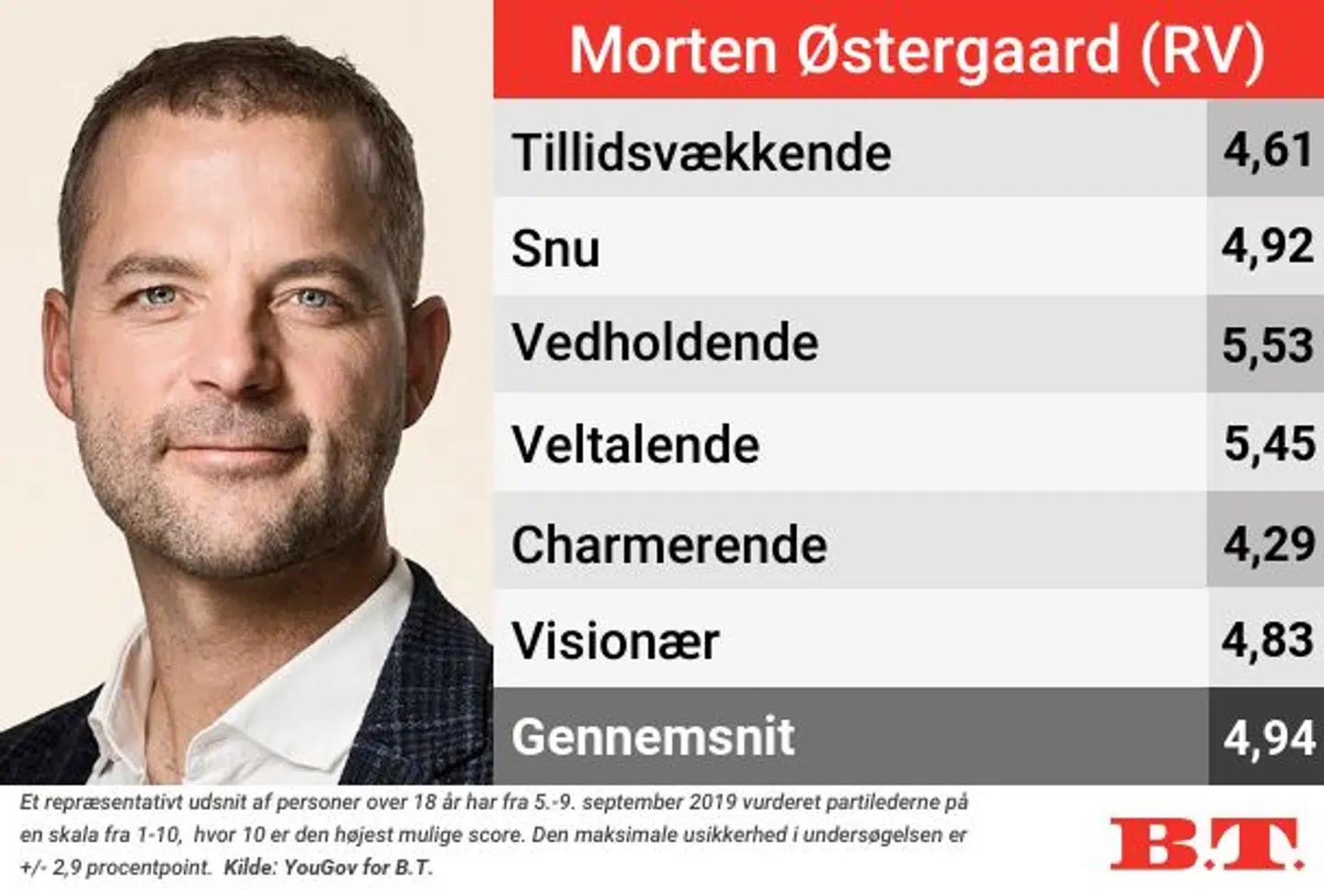 Et af de mere opsigtsvækkende resultater finder man dog på ottendepladsen, hvor De Radikales Morten Østergaard befinder sig.