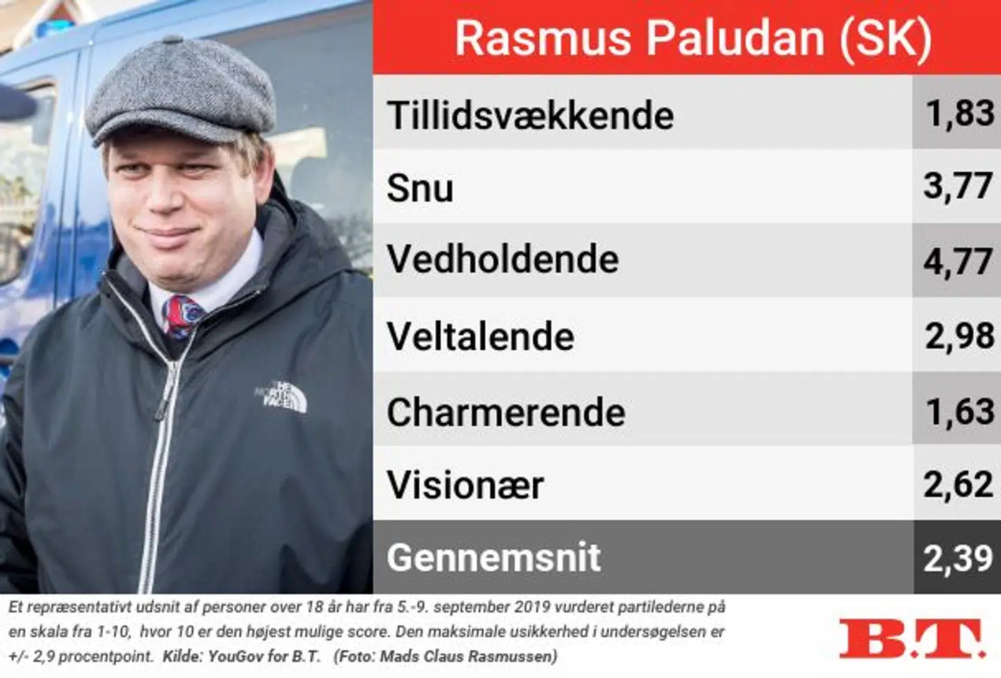 Den absolutte bundskraber er ikke overraskende partilederen i Stram Kurs, Rasmus Paludan.