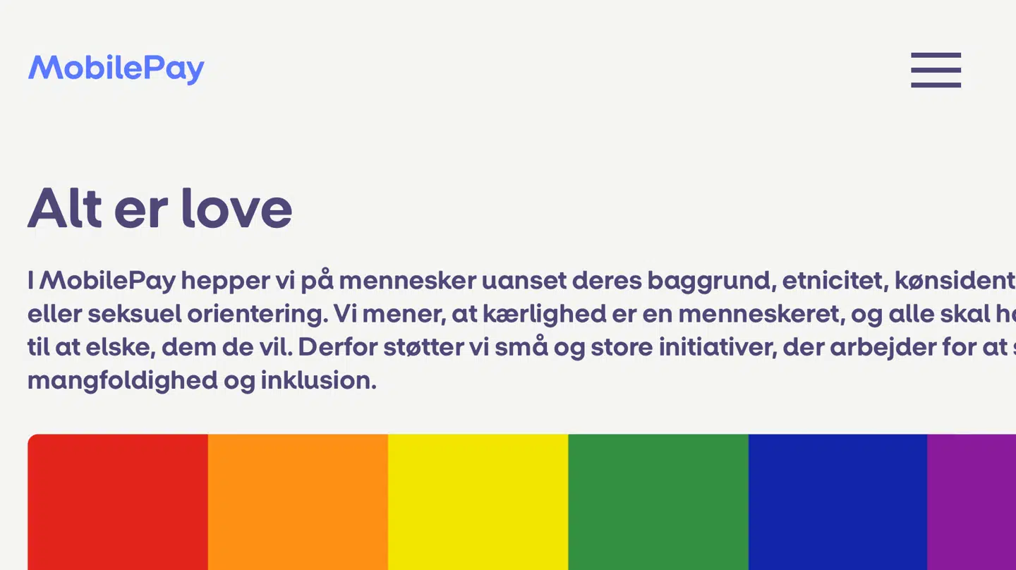 Lagde du mærke til den? Den lille regnbue efterfulgt af en ‘støt LGBT+ Danmark’ tekst, der bød dig velkommen, da du åbnede MobilePay-appen i morges?