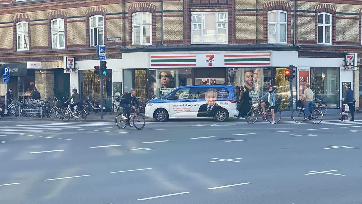 Fredag morgen parkerede V-spidskandidaten Morten Løkkegaards kampagnebil med tændte katastrofeblink på fortovet foran en 7-Eleven på Østerbro i København.