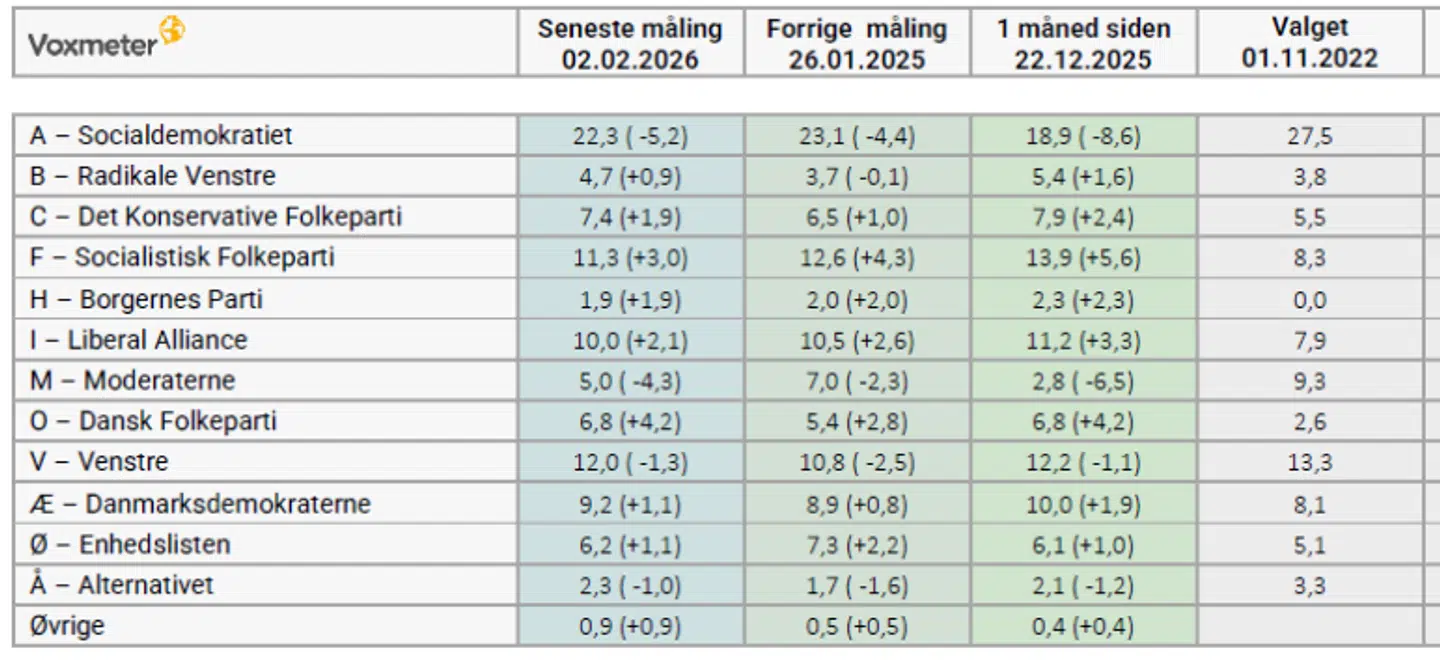 For opbakningen til Socialdemokratiet og Moderaterne, der har været på himmelflugt under Grønlandskrisen, ser i den seneste Voxmetermåling ud til at være klinget af.