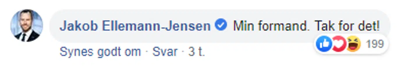 Han var også en af dem, som du kan se længere oppe, der i kommentarsporet til Lars Løkkes opslag viste sin støtte ved at skrive: 'Min formand. Tak for det!'.