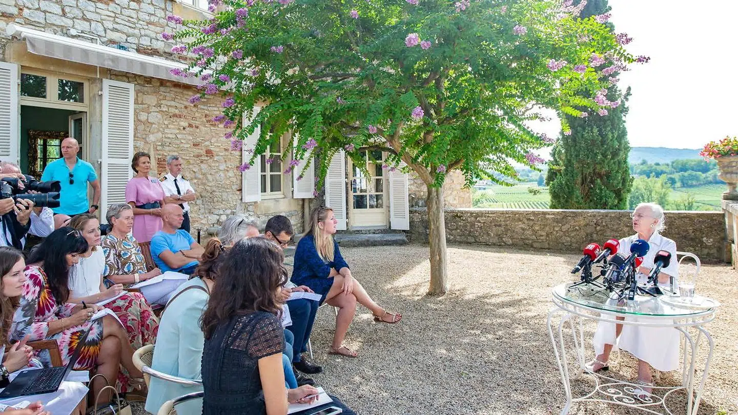 På et pressemøde på vinslottet Château de Cayx i Sydfrankrig torsdag svarede dronning Margrethe ærligt og åbent på spørgsmål fra den danske presse om alt fra prins Henriks aske til slottets fremtid, og det var en klog strategi, mener kongehusekspert og historiker Lars Hovbakke Sørensen.