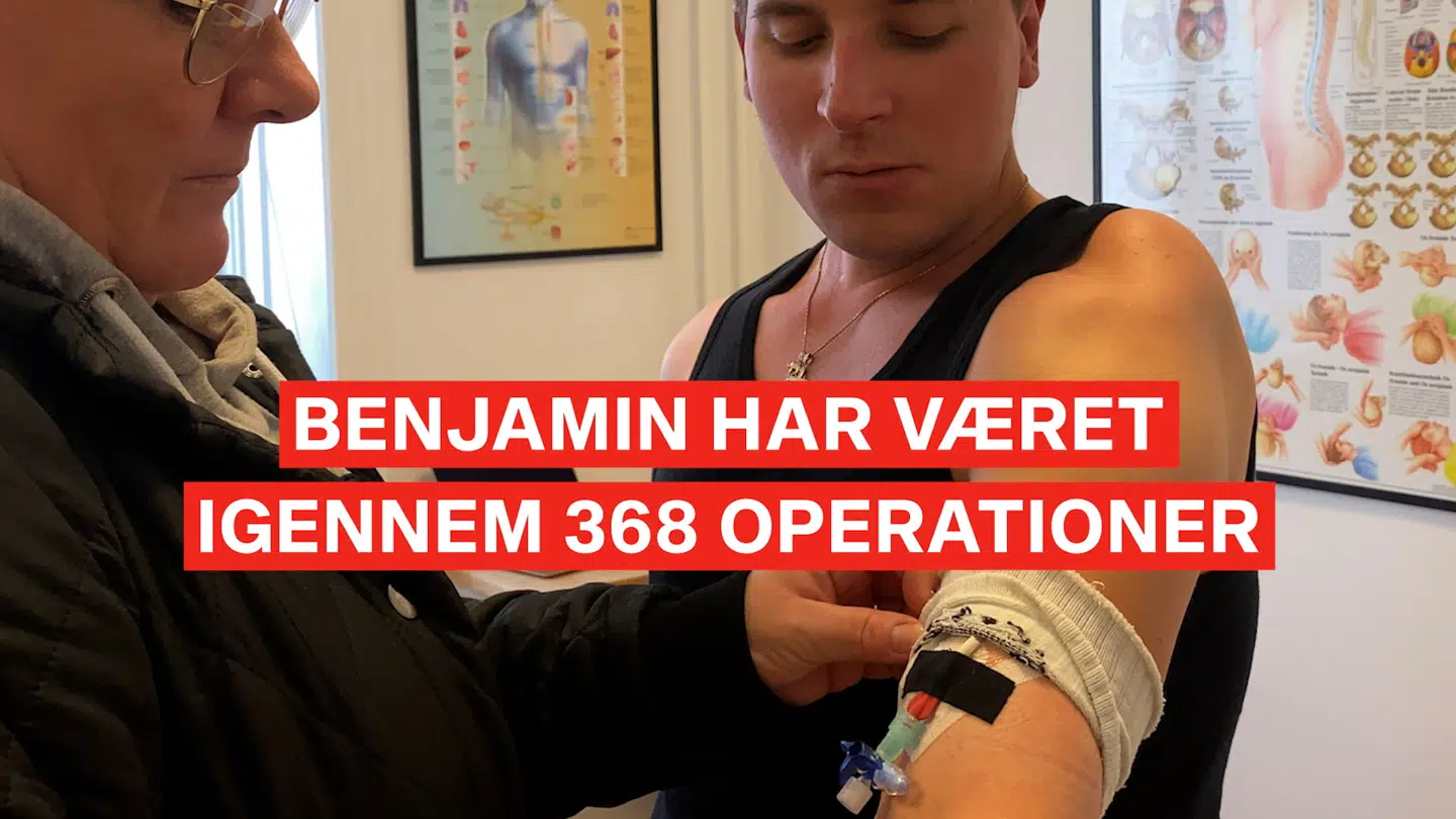 Og det var netop en af disse operationer, der gik galt i 2019. Benjamin skulle have udvidet venerne endnu en gang, men under operationen blev han inficeret med den gule stafylokokinfektion, som nu sidder i blodåren på venstre side. Et sted, hvor en operation er forbundet med stor risiko, da venen er direkte forbundet med hjertet.