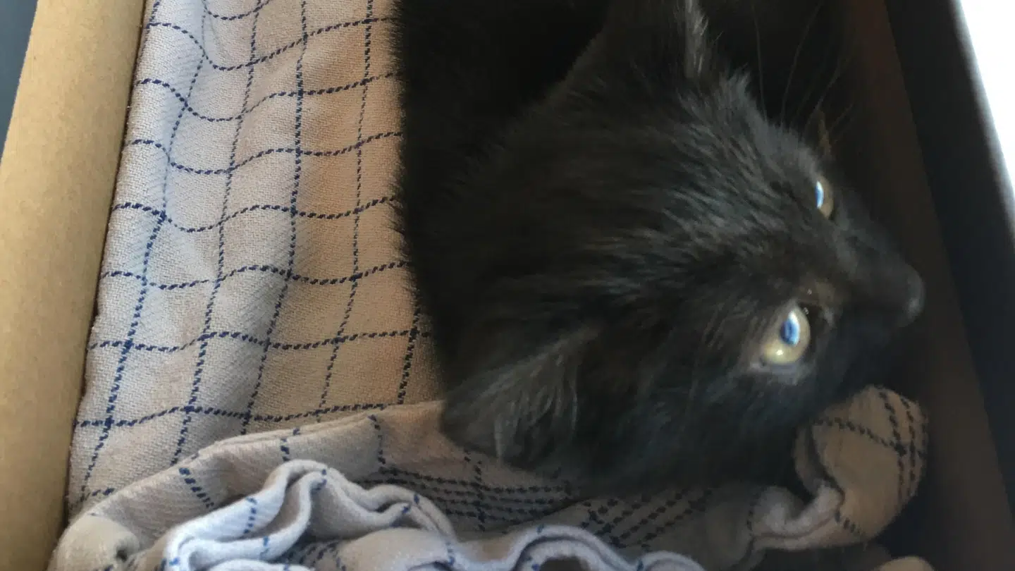»Jeg åbner så døren og kan se, at det er en killing. Den er utrolig udmagret, har øjenbetændelse og har det generelt set rigtig dårligt.«