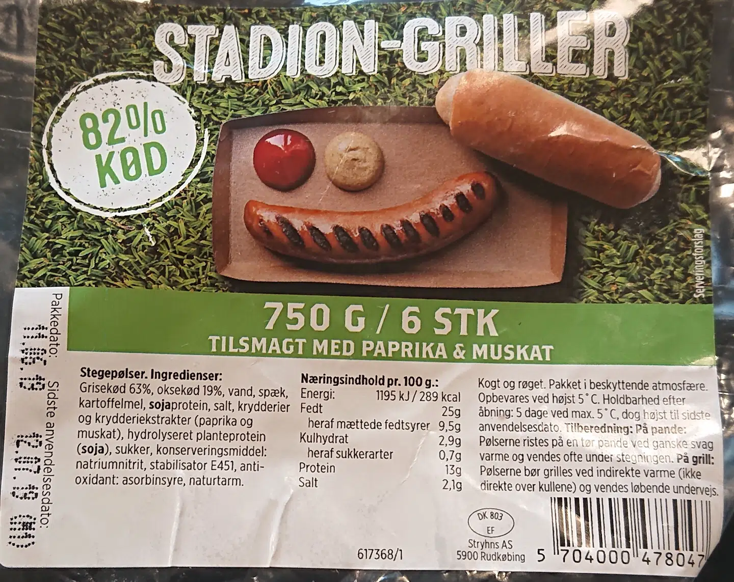 Pakkerne har EAN-nummer 5704000478047 og indeholder seks grillpølser med en samlet vægt på 750 gram.