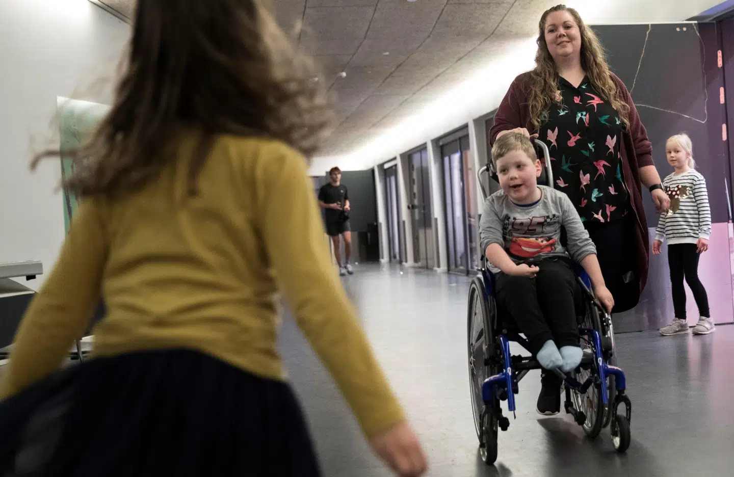 I dag er familierne taget i svømmehallen Vandhalla på Egmont Højskolen. Her pjasker Lily fornøjet rundt i et specialdesignet varmvandsbassin med en bund, der kan sænkes og hæves alt efter brugernes ønsker. Selv kørestole kan komme ned i vandet, hvis behovet er der.