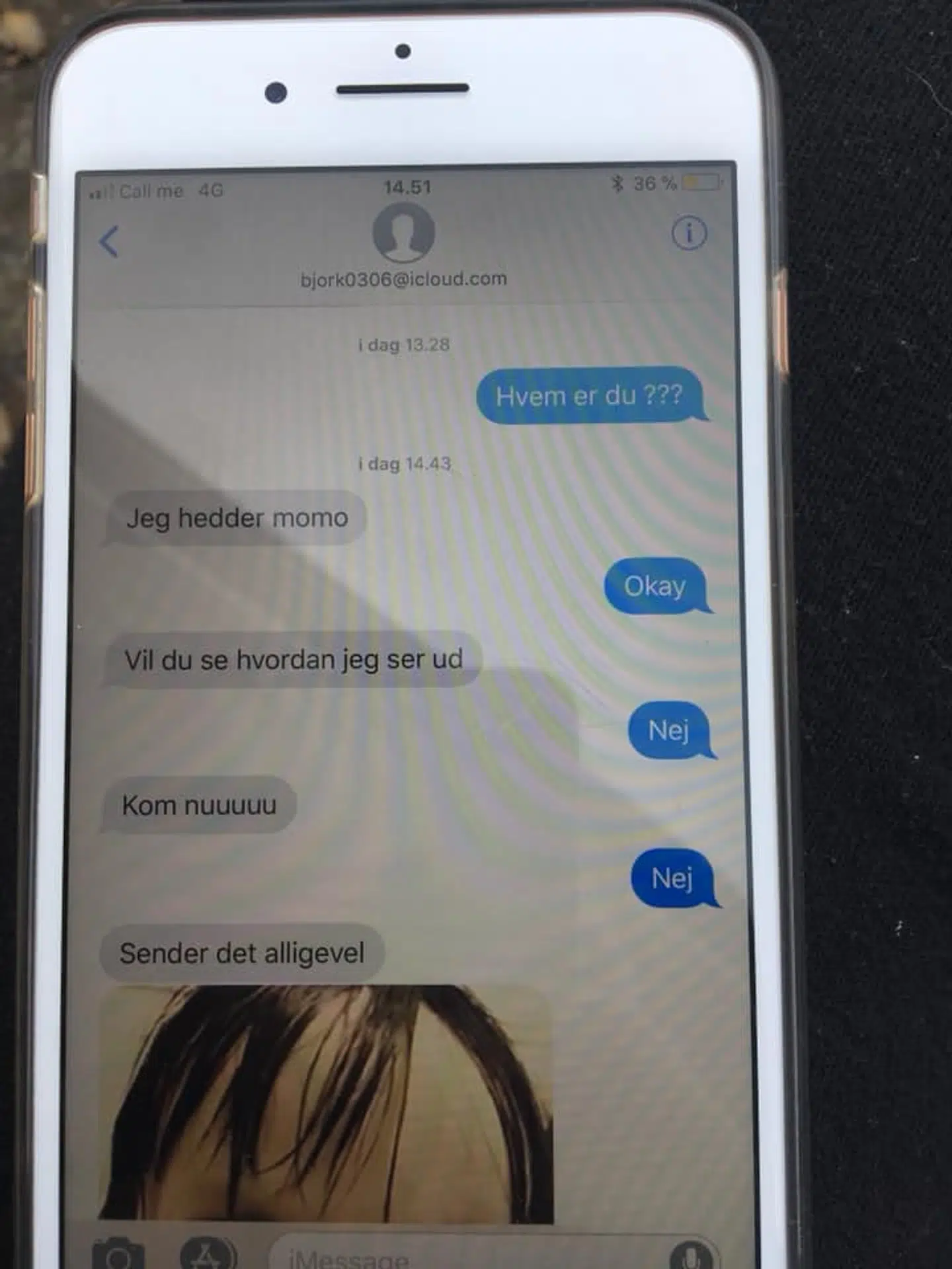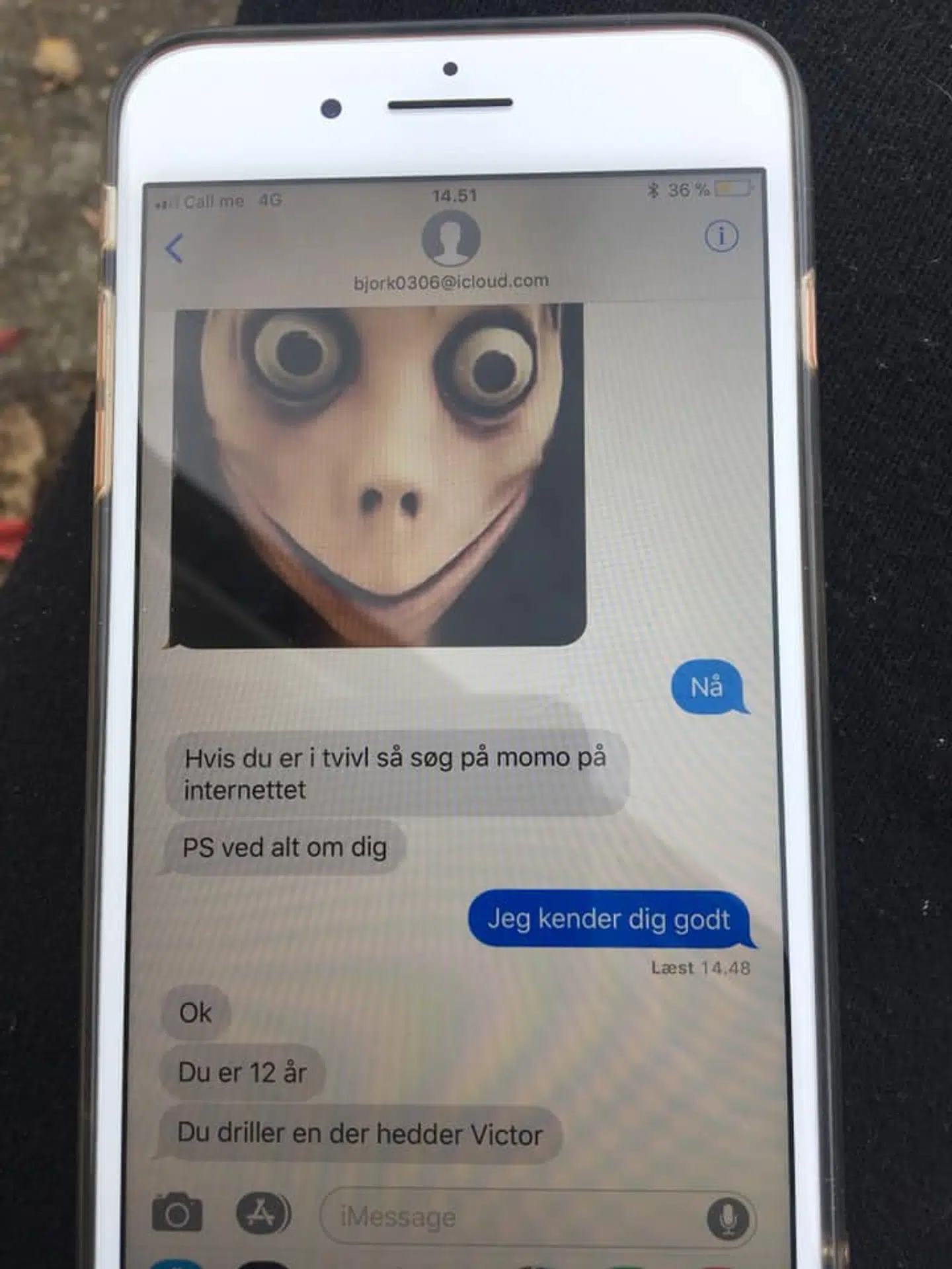 Afsenderen udgav sig for at være den såkaldte 'Momo', som dækker over et nyt skræmmende fænomen, hvor børn og unge bliver kontaktet af figuren, der giver dem udfordringer, de skal gennemføre.