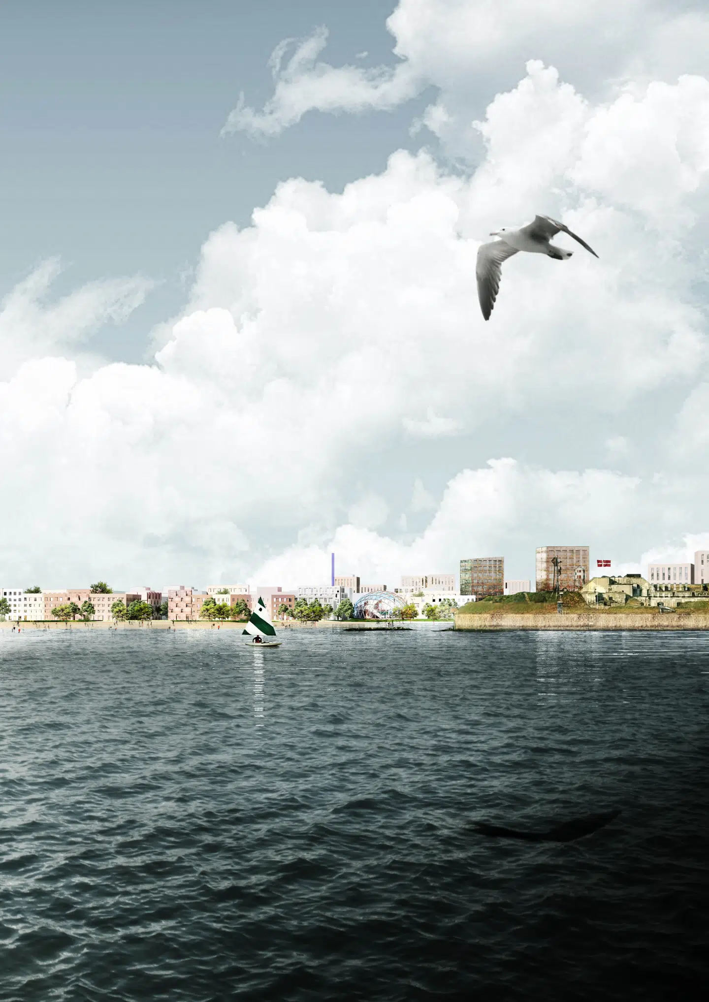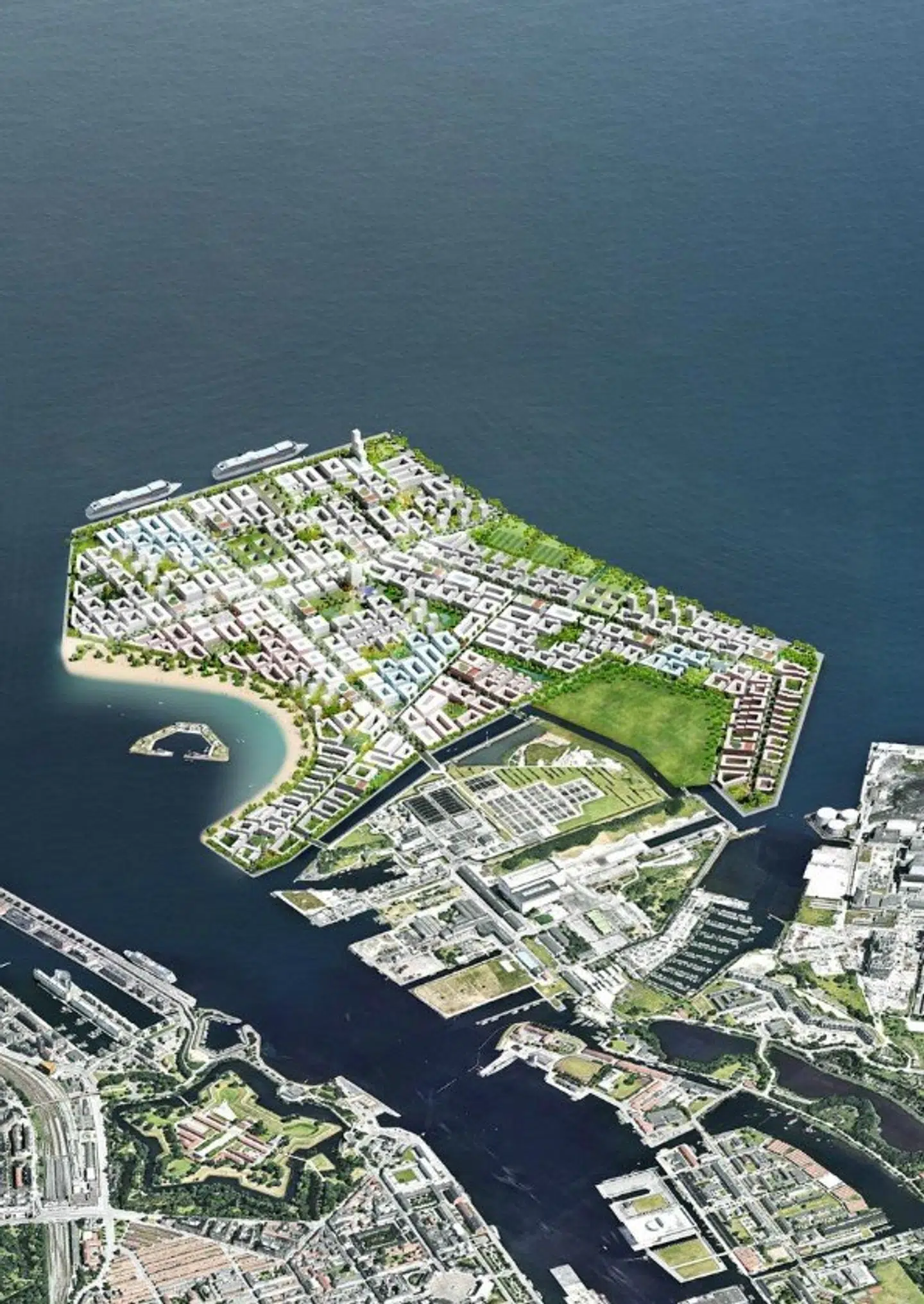 Her ser man også den nye bydel langs kysten.