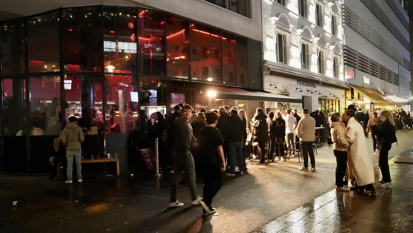 Der var lange køer foran diskoterer og barer. Her blandt andet foran Der Kuhstall og Bar Smil.