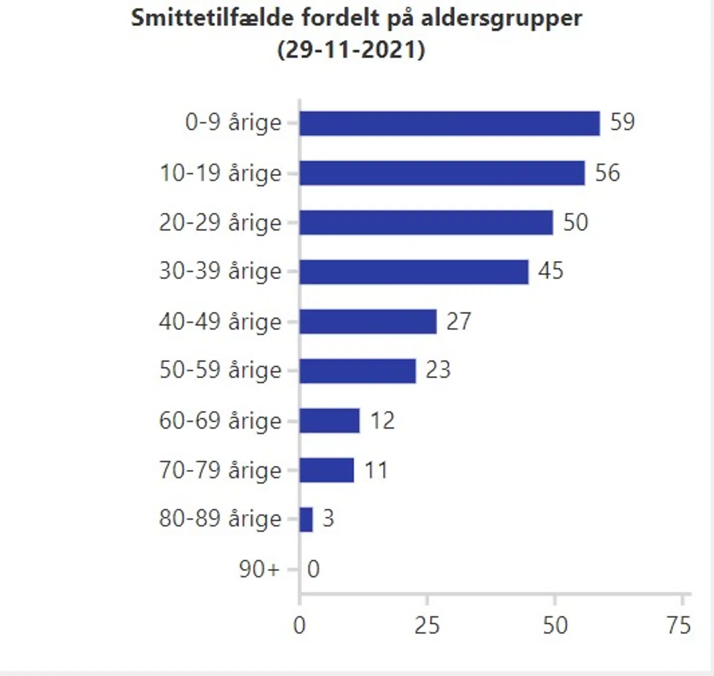 59 af de smittede er i alderen 0-9 år, mens 56 er i alderen 10-19 år.