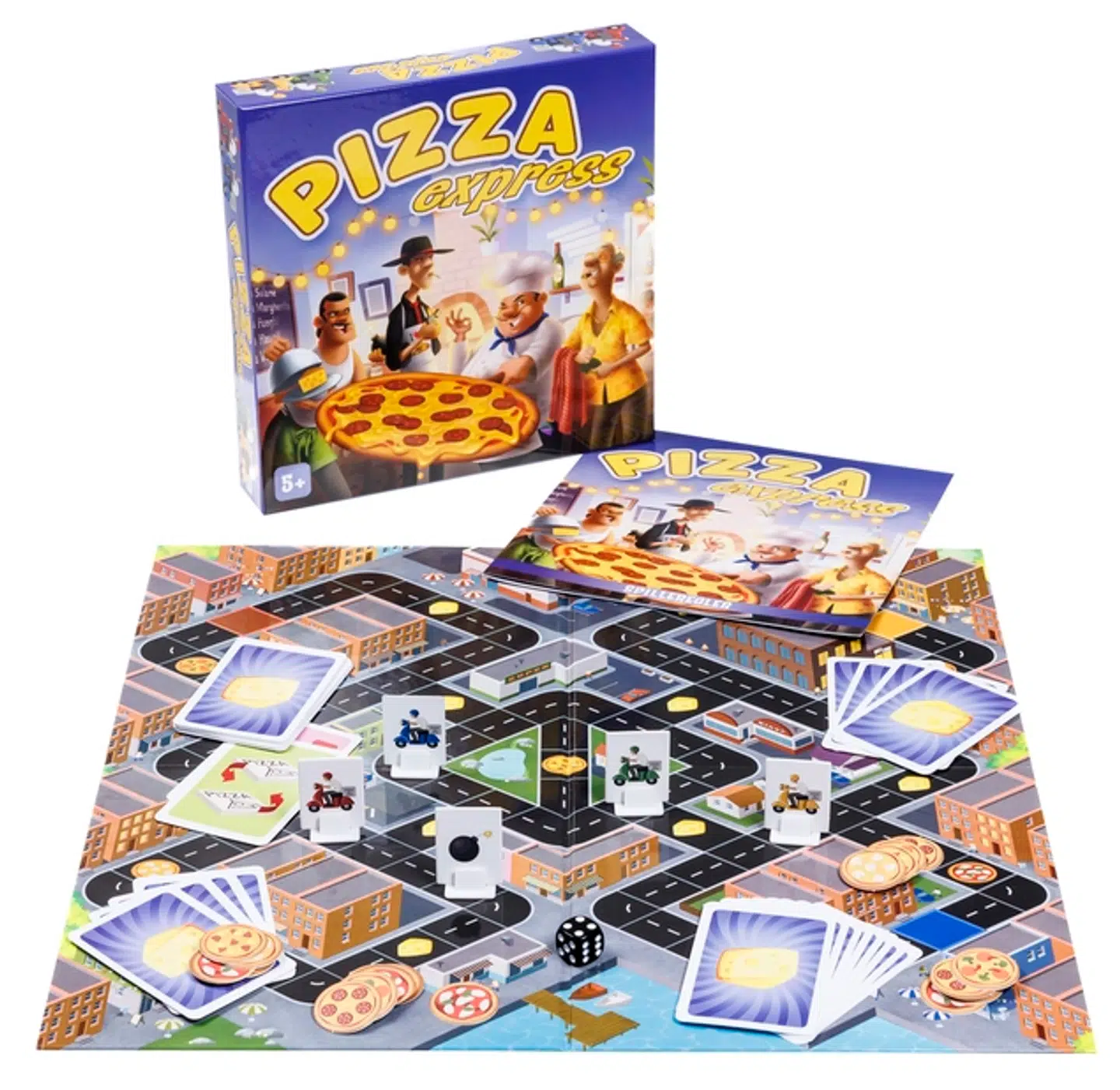 Pizza Express handler om fire skumle pizzabagere, der kæmper om at have byens hurtigste pizzeria. I skal med held og taktik forsøge at levere pizzaer til fem forskellige steder i byen og overgå hinanden undervejs.
