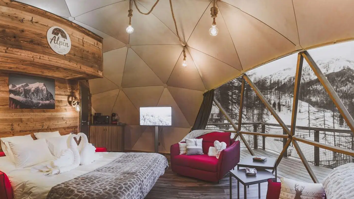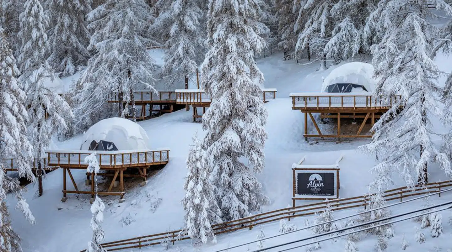 Alpin d’Hôme ligger i Les Orres, Frankrig og tilbyder en unik skiferieoplevelse. Her kan du falde i søvn under stjernehimlen og vågne op til en klar blå himmel, midt i det smukke bjerglandskab.