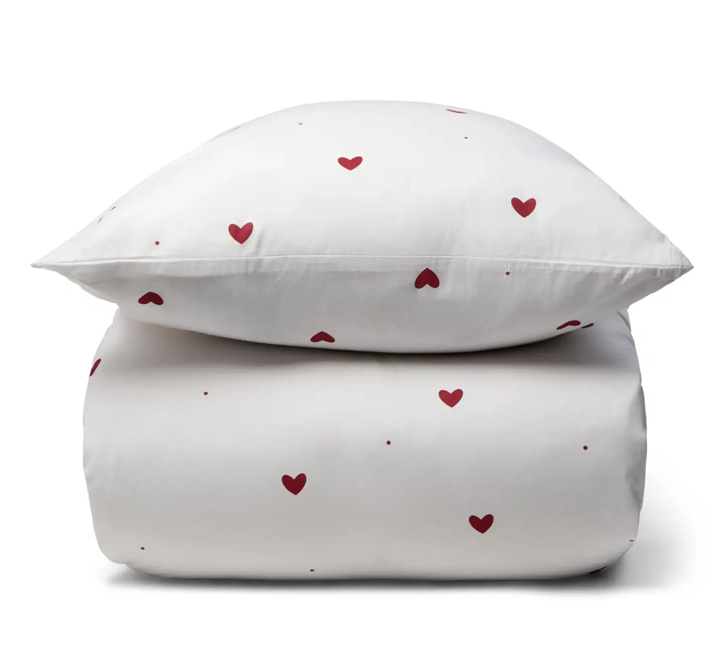 Hvidt sengetøj med røde hjerter i 100% bomuld - spar 60 %