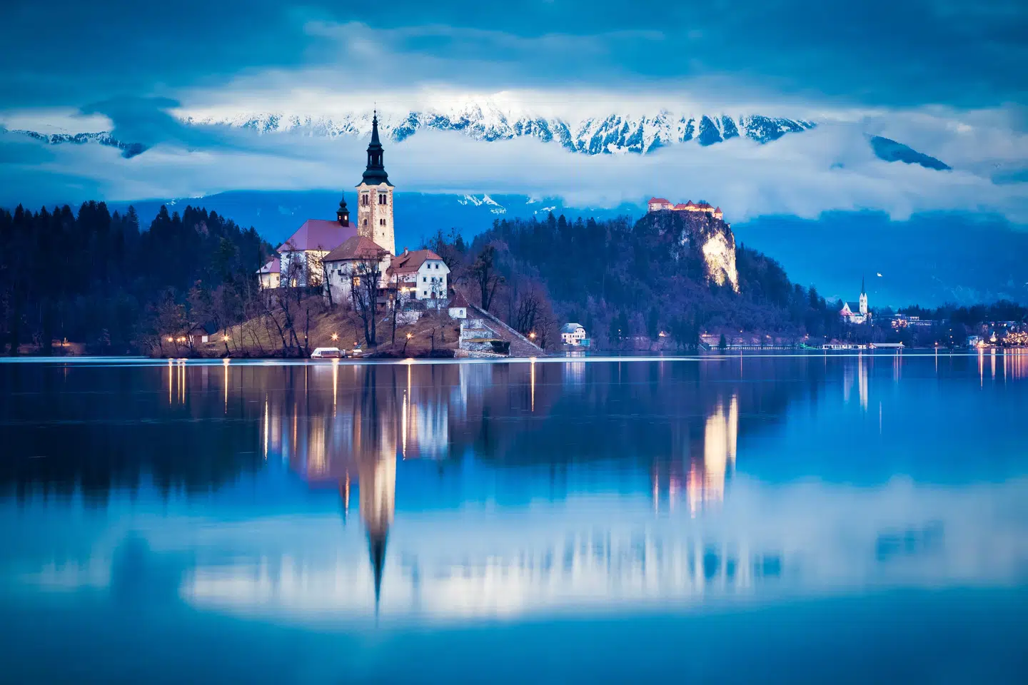Bled-søen: Mindre end en times kørsel fra Ljubljana ligger den ikoniske Bled-sø. Om vinteren er søen indhyllet i en fredfyldt og næsten mystisk atmosfære. De omkringliggende bjerge er dækket af sne, og den lille ø med kirken i midten af søen skaber et postkort-perfekt motiv. Et besøg på Bled Slot, der klamrer sig til en klippe over søen, og en smagsprøve på den berømte kremšnita (Bled-flødekage) er obligatorisk.