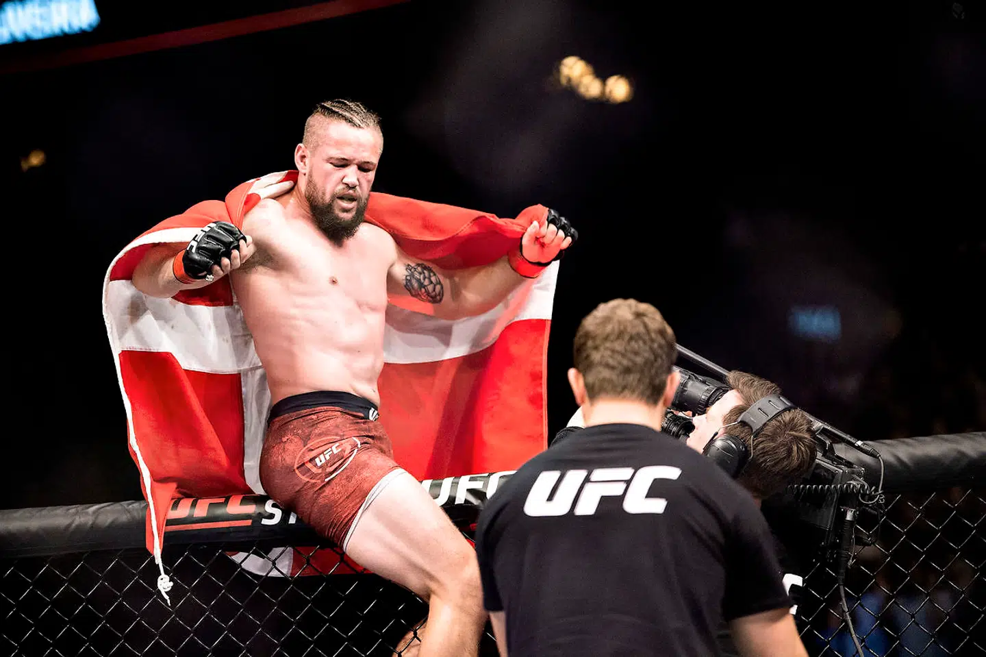 Med Dannebrog over skuldrene og en kold dåseøl i hånden pustede den danske MMA-fighter Nicolas Dalby ud efter lørdag aftens forrygende UFC-comebacksejr over brasilianske Alex Oliveira.