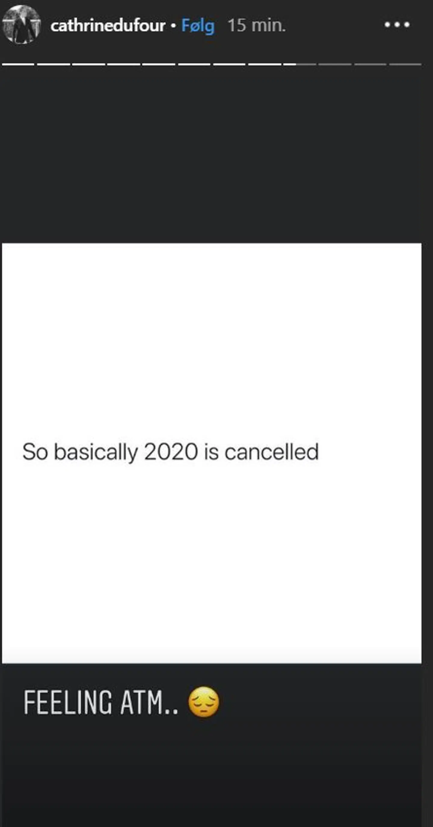 »Så 2020 er mere eller mindre aflyst,« skriver hun.