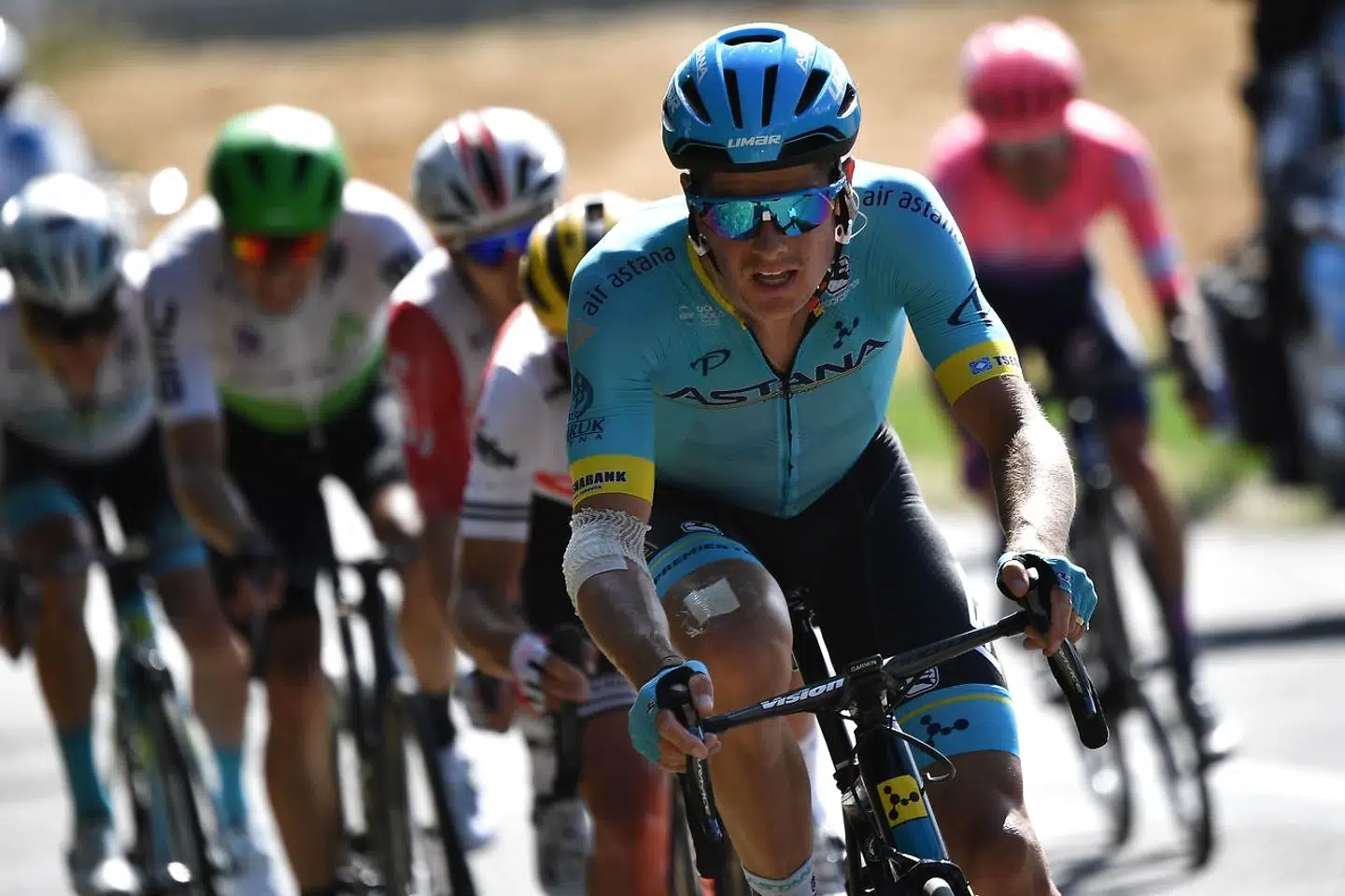 Det var med omkring 40 kilometer til mål, at feltet splittede i vinden og favoritter som Jakob Fuglsang, Thibaut Pinot, Richie Porte og Rigoberto Uran blev fanget bagved.
