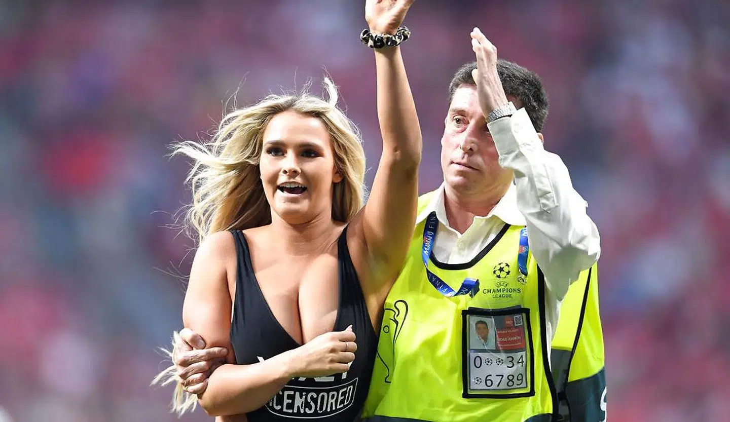 Hun løb på banen under Champions League-finalen mellem Liverpool og Tottenham i en meget tætsiddende og afslørende badedragt.