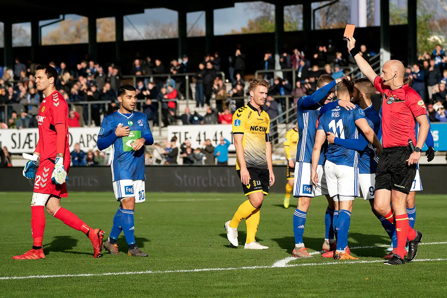 Kort før målet havde Horsens' målmand nemlig fået direkte rødt kort.