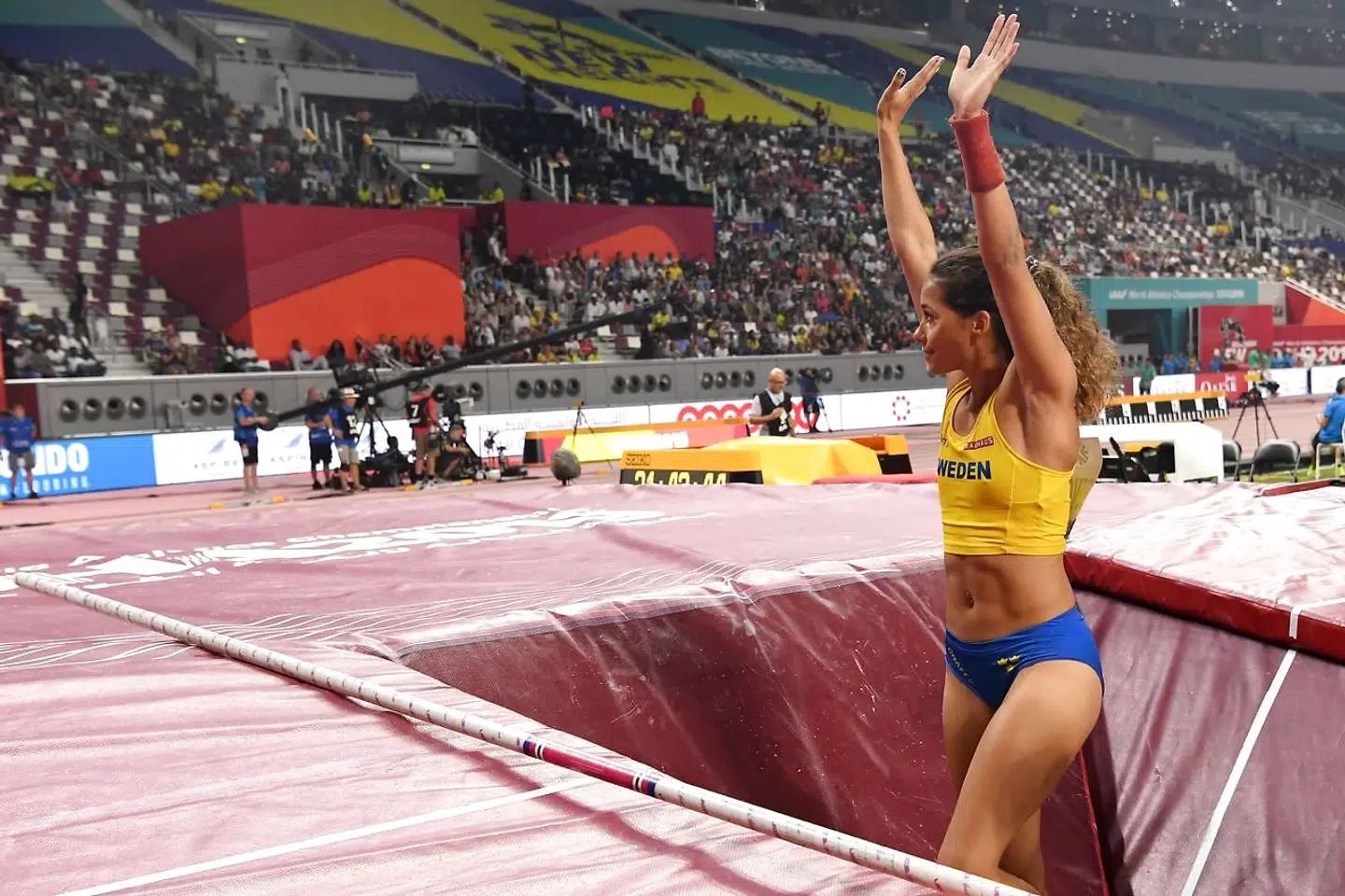 Den svenske stangspringer hang et øjeblik i luften. Så faldt hun.