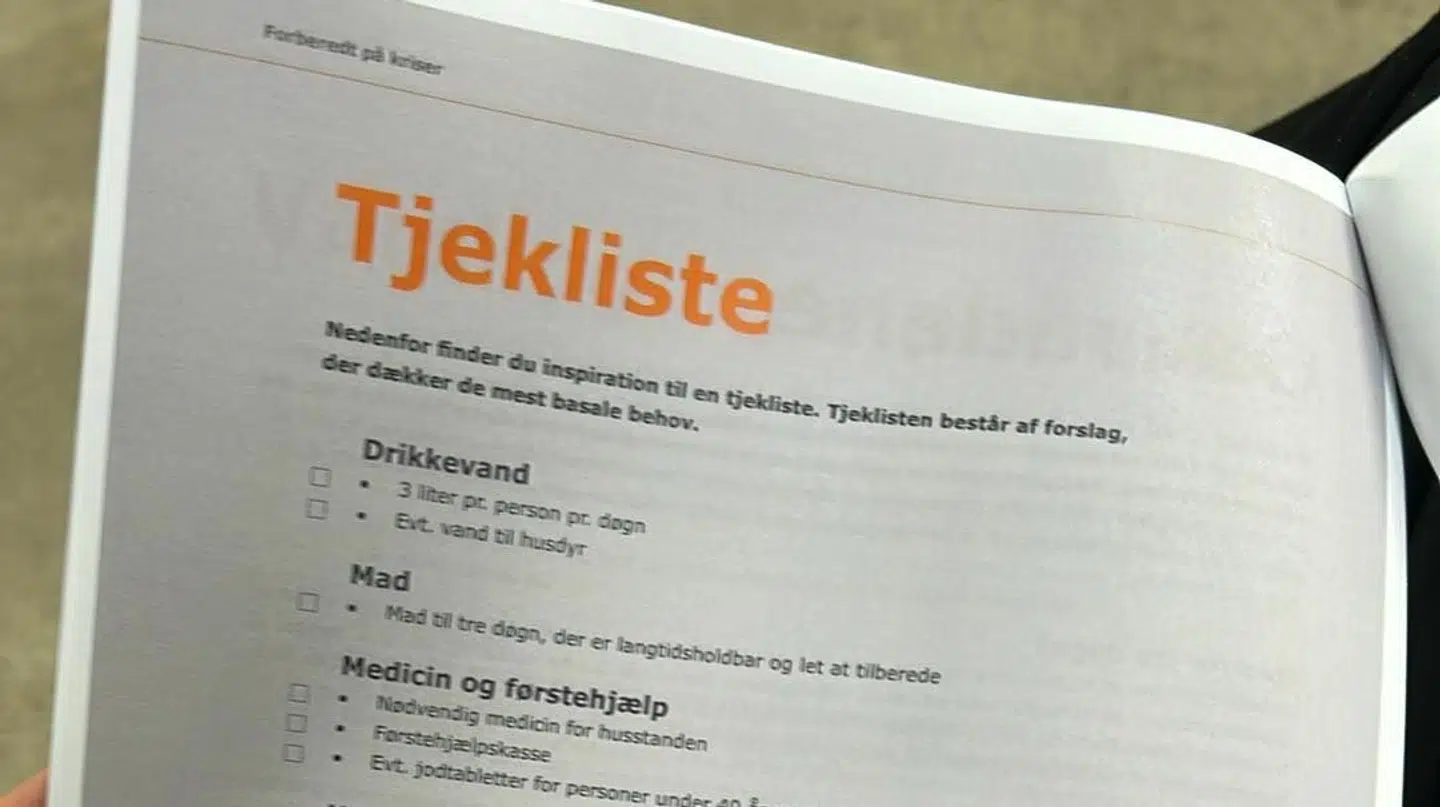 Herunder, at man, i tilfælde af en krise, anbefales at kunne klare sig selv og sin husstand i tre dage med forsyninger som vand, mad og medicin.