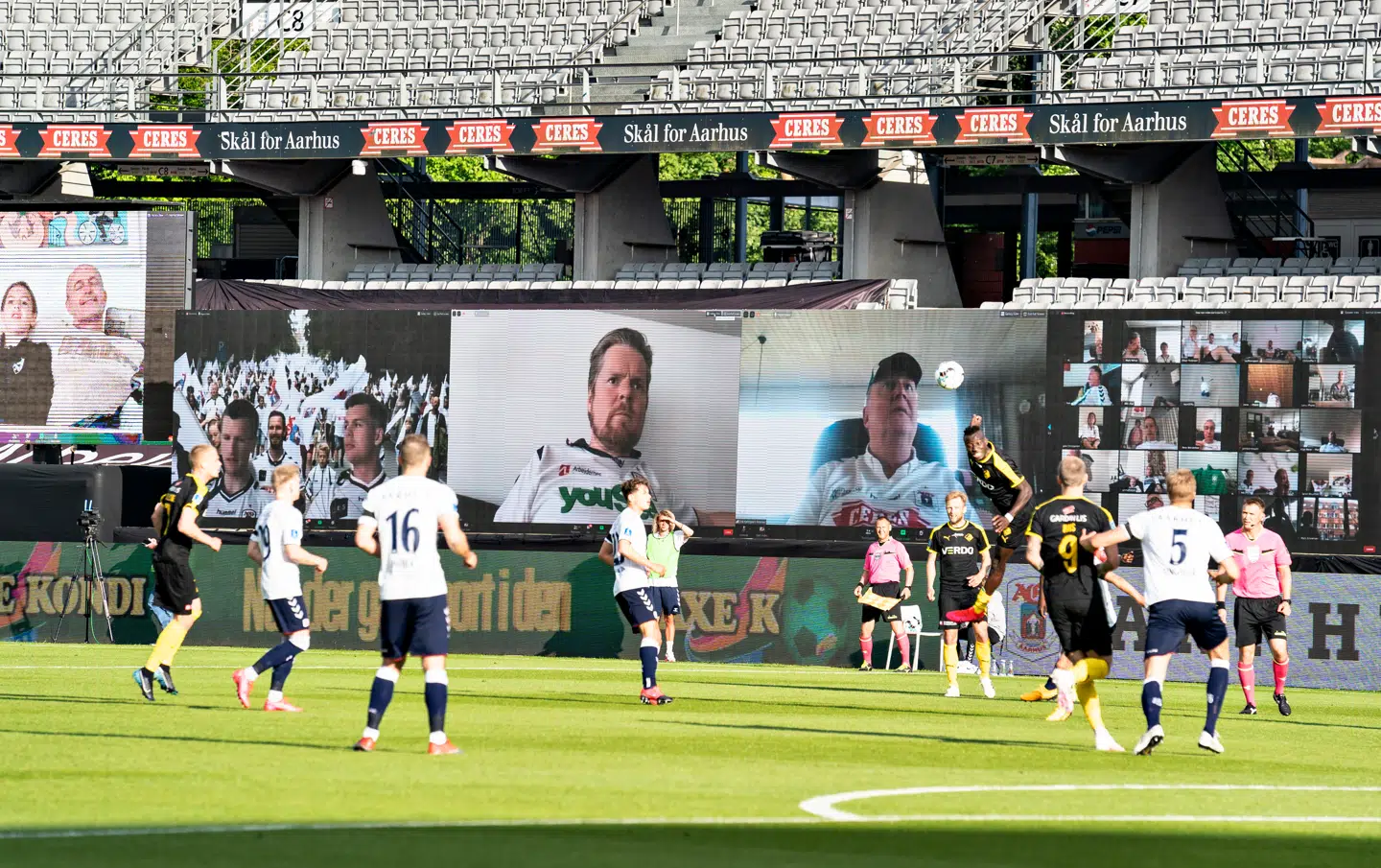 Han og de meget få fremmødte på Ceres Park i Aarhus kunne se en fodboldkamp med videostream af fans og dåselyd i højttalerne. Og det var en oplevelse, som cheftræneren holdt meget af i disse coronatider.