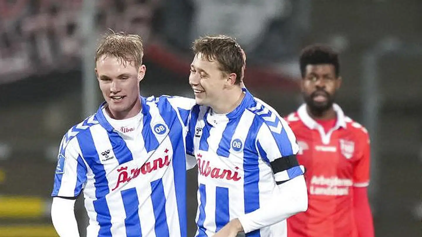 Mens Mikkel Hyllegaard ser til fra sidelinjen, har holdkammeraterne spillet OB i det forjættede top seks-land, mens klubbens fans leverer solid opbakning fra lægterne.