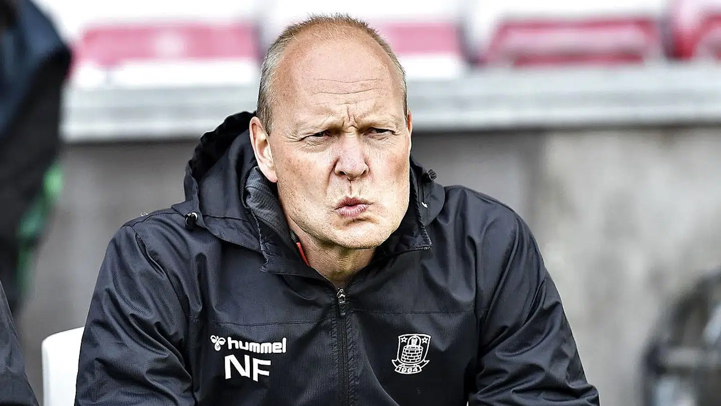 Lyngby må undvære cheftræner Christian Nielsen i søndagens superligakamp hjemme mod AGF. Cheftræneren fik en bold i hovedet i fredags og er så medtaget, at han ikke kan være på sidelinjen søndag.