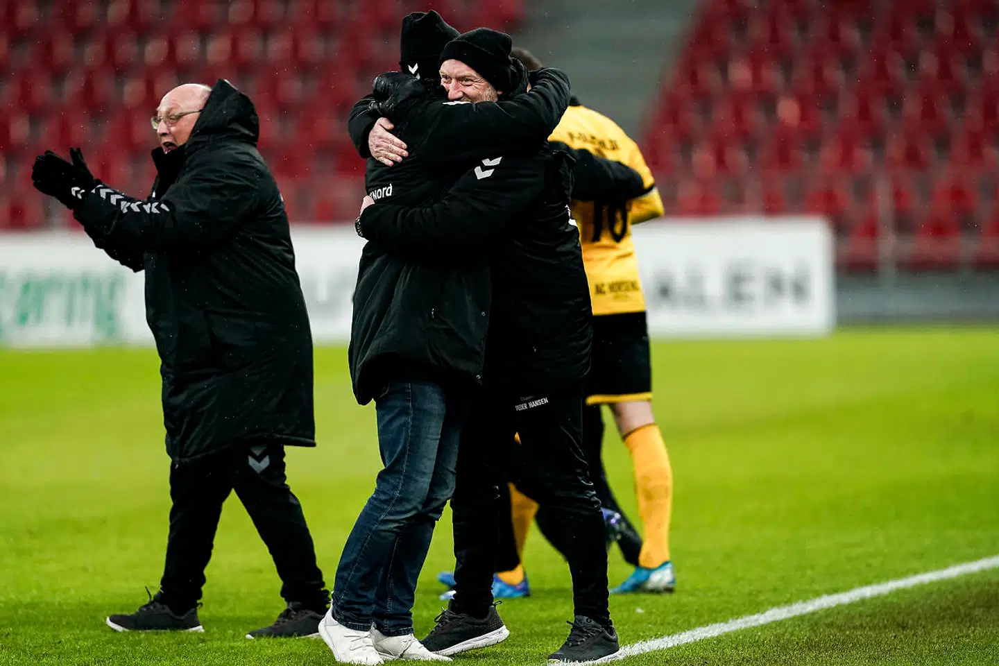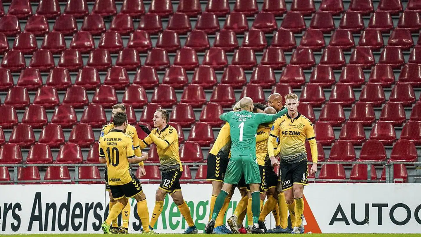 For Den Gule Fare hentede en 1-0-sejr i Telia Parken over FC København og kunne juble sammen derefter. Og det blev der gjort med både krammere og alt det andet, som Superliga-spilleren reelt ikke må i denne corona-tid.