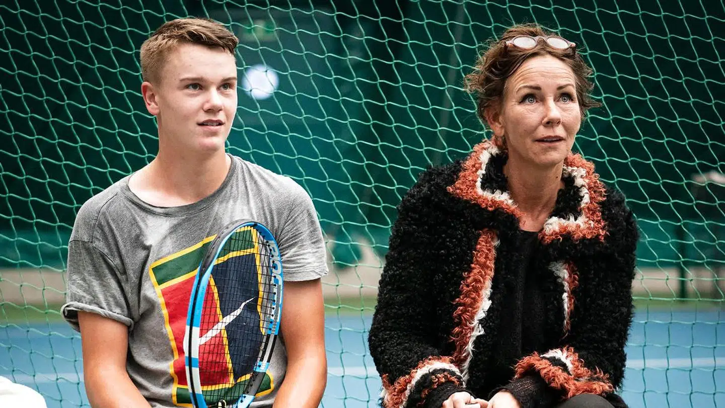 Her sad hans mor, Aneke Rune, og hun forlod straks sin plads i boksen 'for at give ro' og på den måde hjælpe tenniskometen, der kæmpede med enorme frustrationer og store udsving i præstationen.