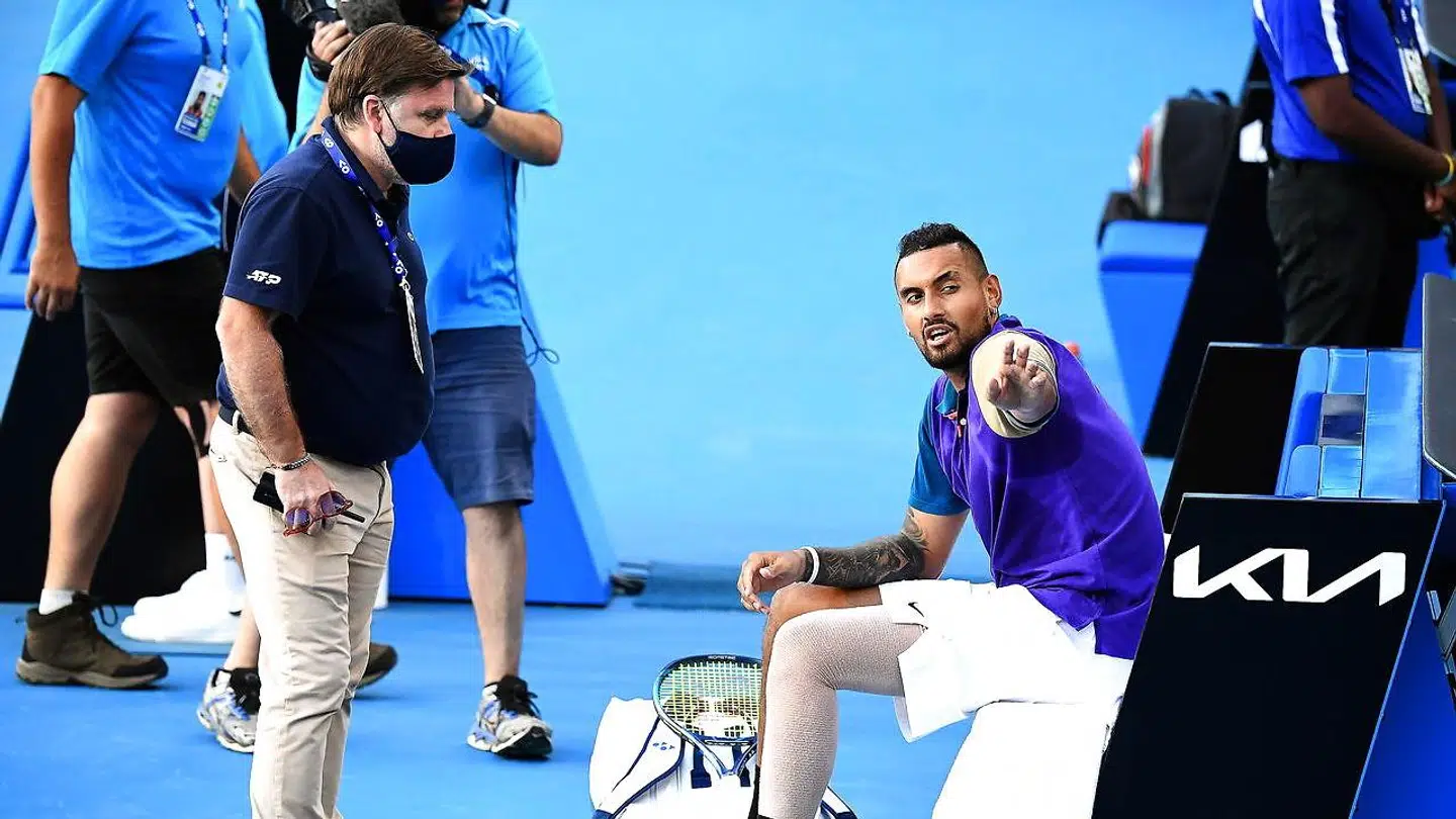 Kyrgios nægtede i første omgang at spille videre, og siden forlangte han, at turneringens supervisor kom til banen for at garantere, at han ikke ville modtage en bødestraf for optrinnet. Ellers ville han ikke fortsætte kampen.