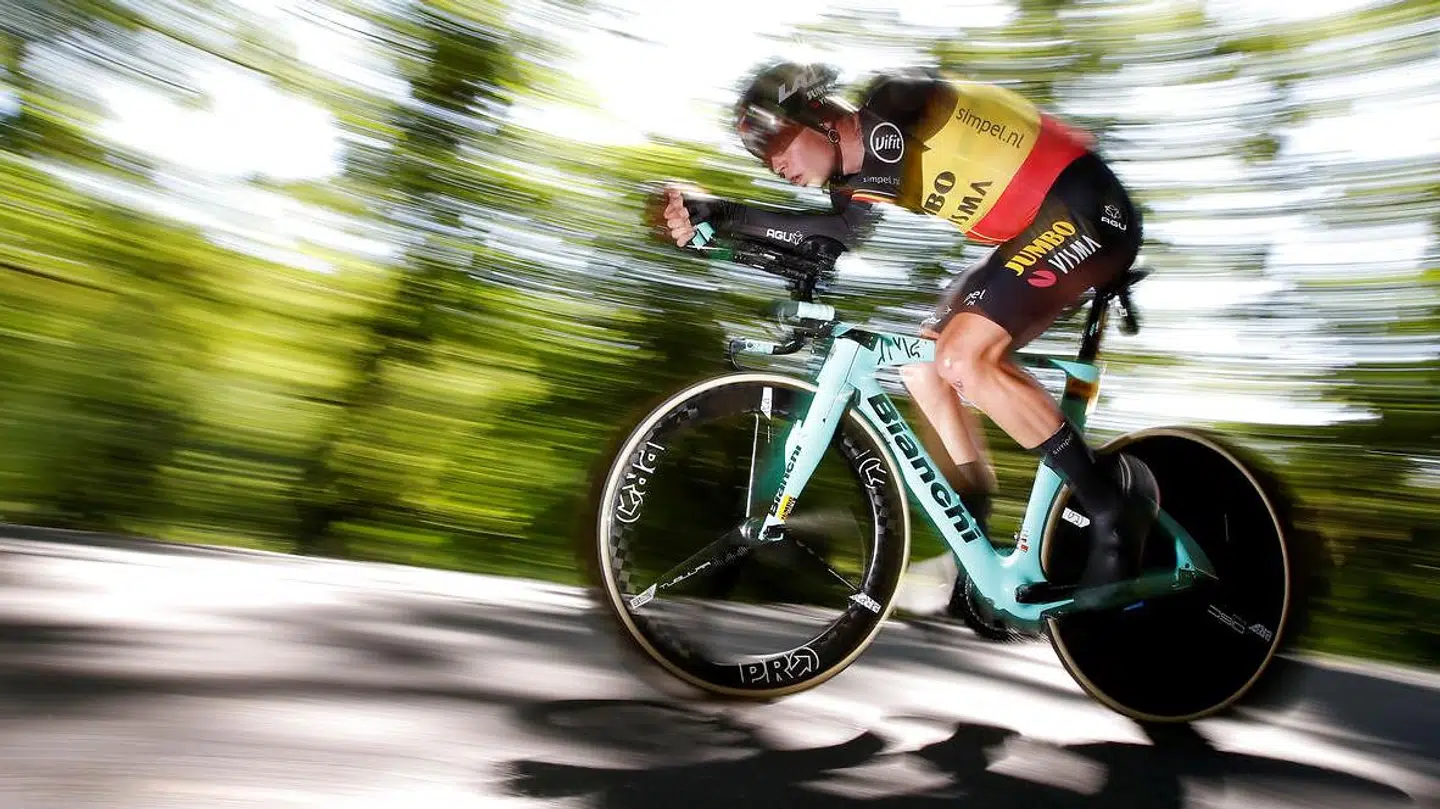Belgiske Wout Van Aert styrtede på sin enkeltstart.
