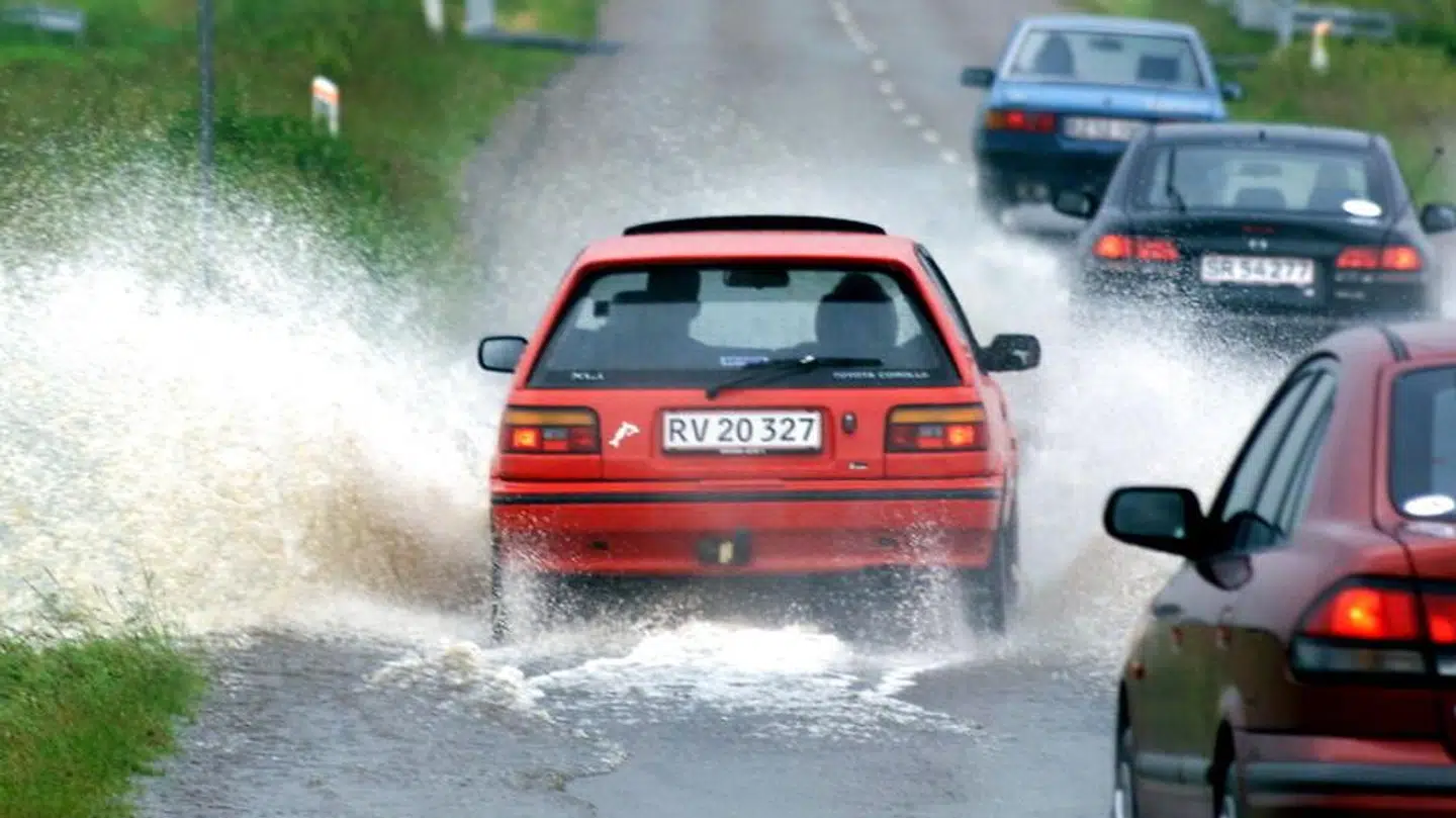 Og der er da også rigelige mængder vand på motorvejen ved Aarhus, fortæller vagtchefen, der ligeledes nævner, at en bil med en kvinde længere nord på mistede grebet og endte i midterrabatten.
