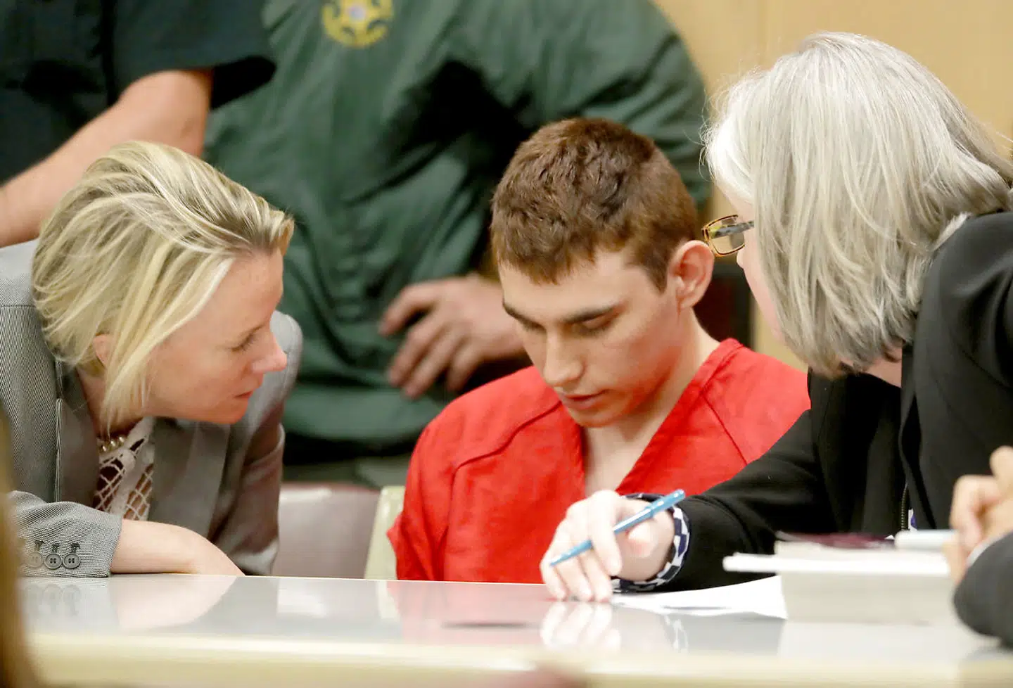 Den mistænkte var iført en orange fangedragt og havde hænderne i håndjern, da han blev ført ind i retssalen i Parkland, Florida.