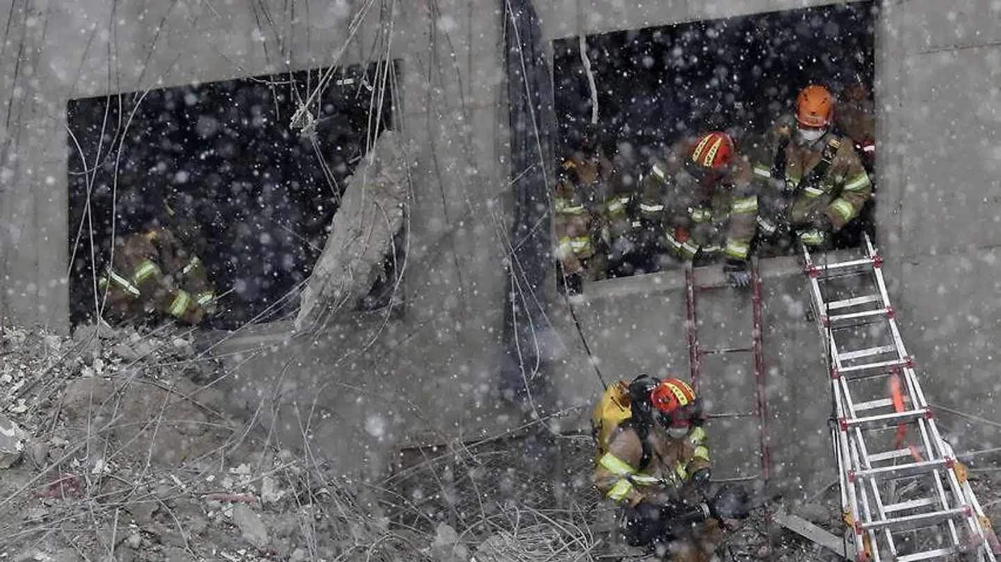 Besætninger forsøger nu at rydde murbrokkerne ud for at komme frem til manden, men det er endnu ikke bekræftet, om han er i live eller om han er en af de forsvundne arbejdere.
