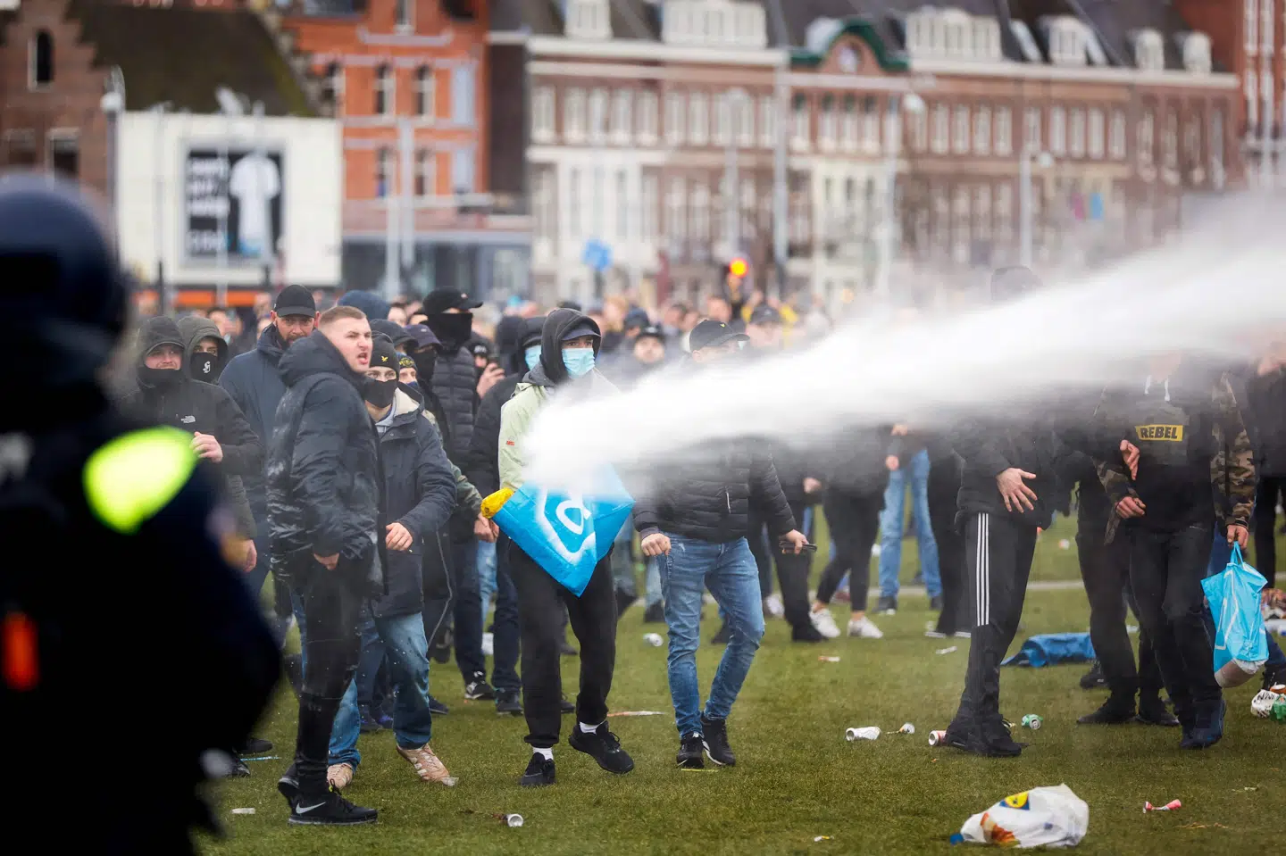 En yngre kvinde faldt om og blev båret væk.